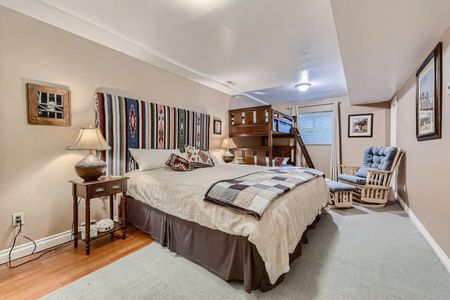 Bedroom 5: Tucked away in the corner of the downstairs living room, this small bedroom features another set of twin-sized bunk beds, ideal for children or anyone seeking privacy.