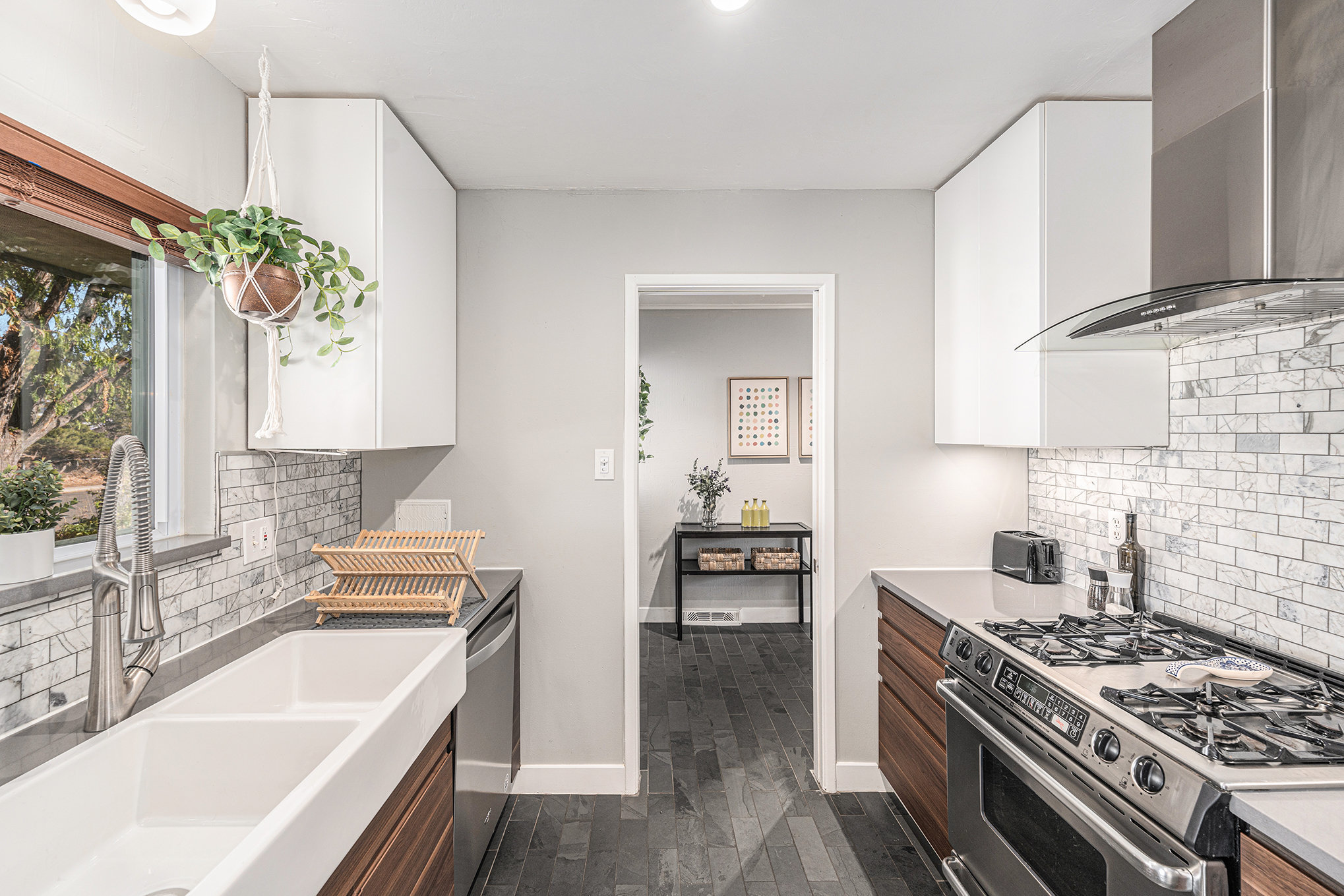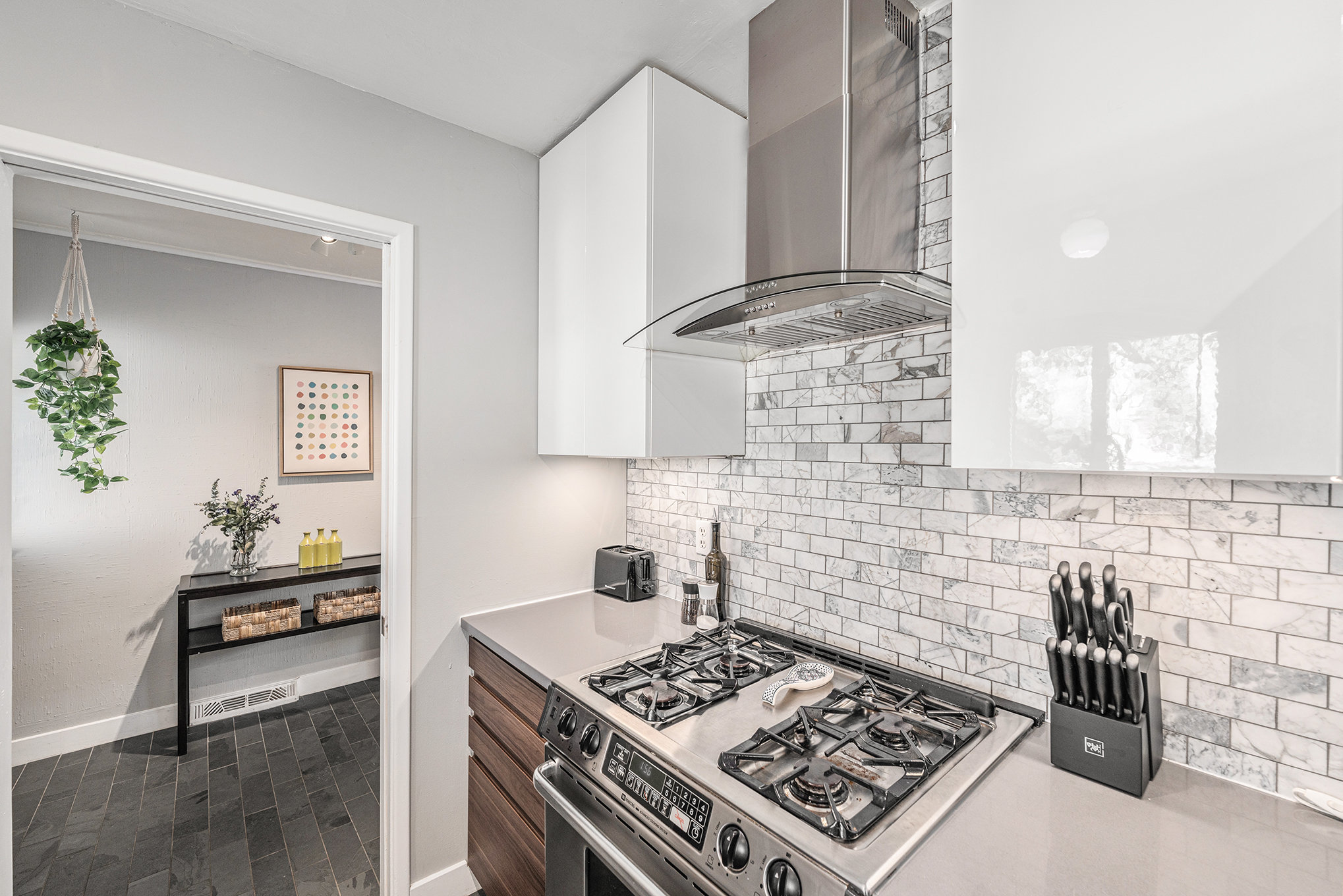 This kitchen has everything you need to whip up your favorite meals. From pans and bakeware to an Instant Pot and popcorn machine, it’s both functional and fun. Enjoy the drip coffee maker, coffee grinder, milk frother, and a generous stash of coffee on the house!