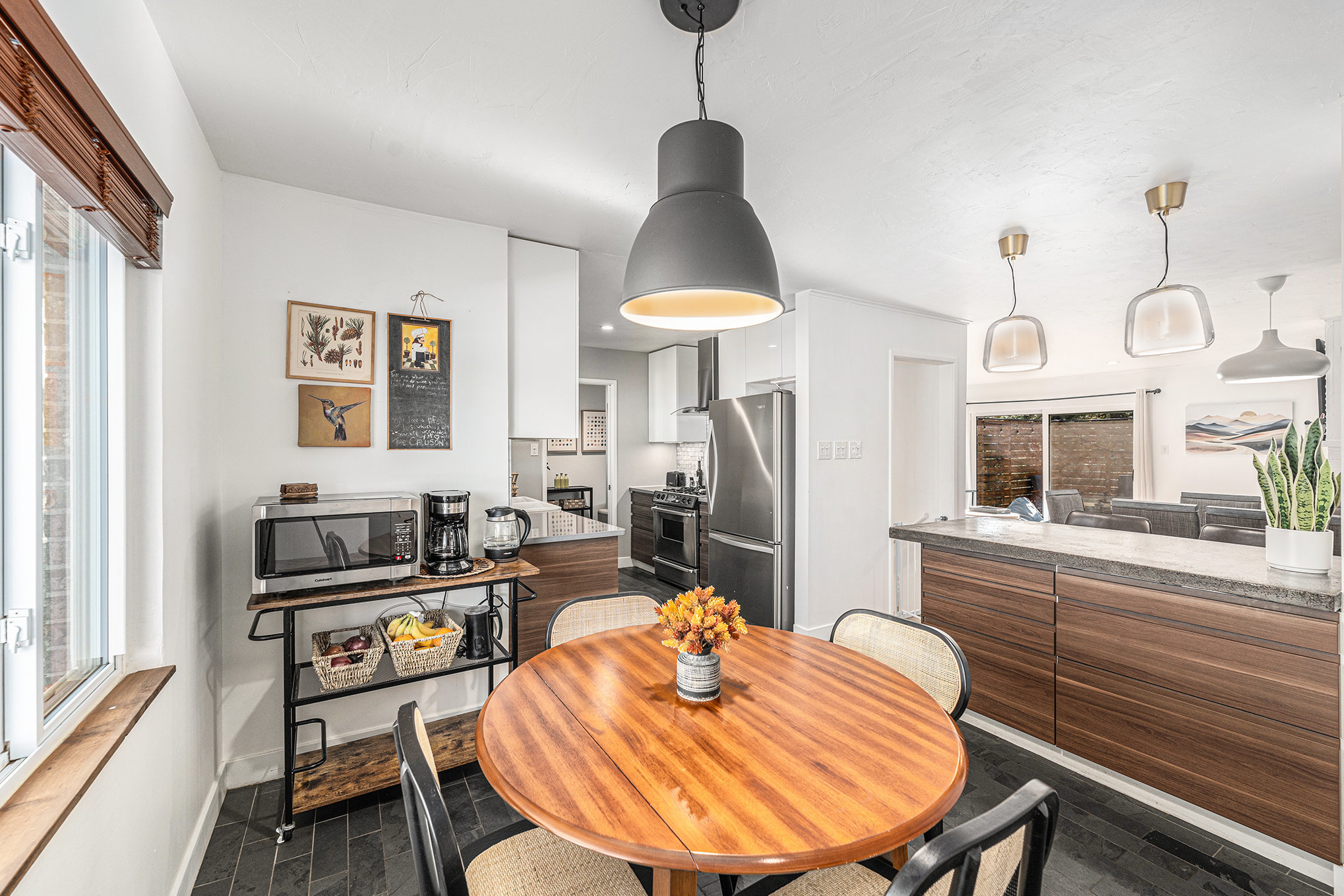 There are four dining areas to enjoy your meals: a breakfast table in the kitchen, bar seating around the peninsula, seating for 8 around the formal dining table, our outside on the deck!