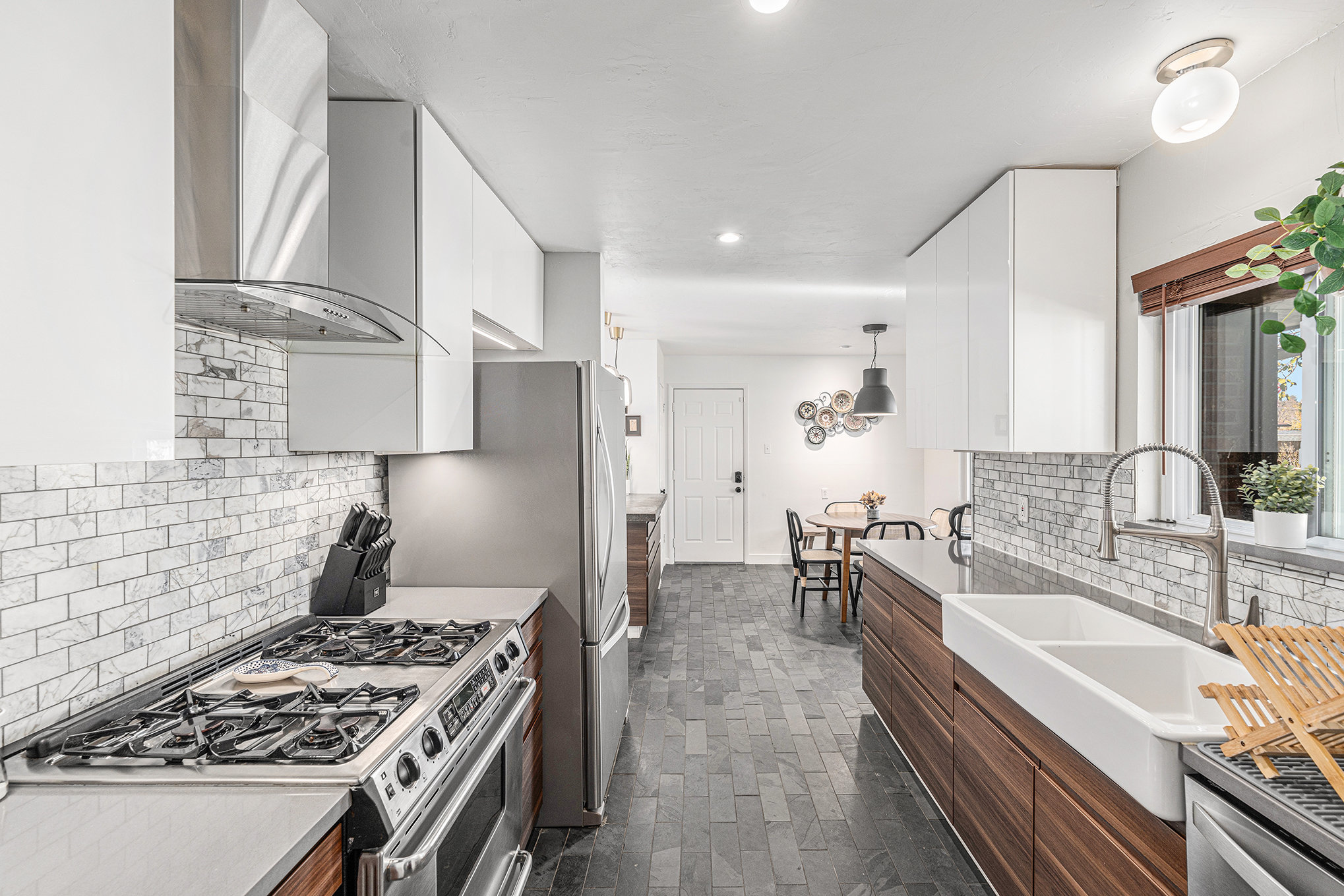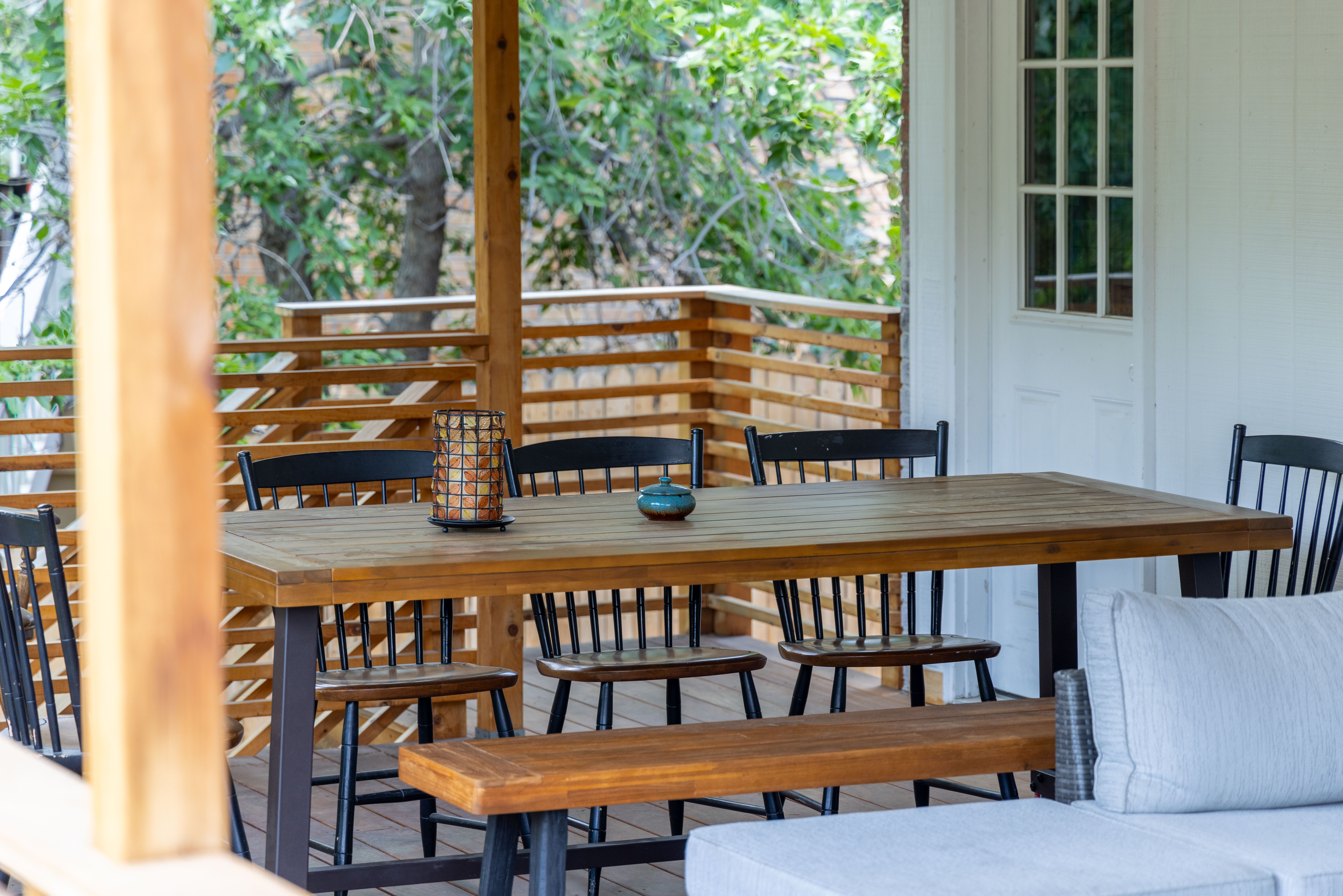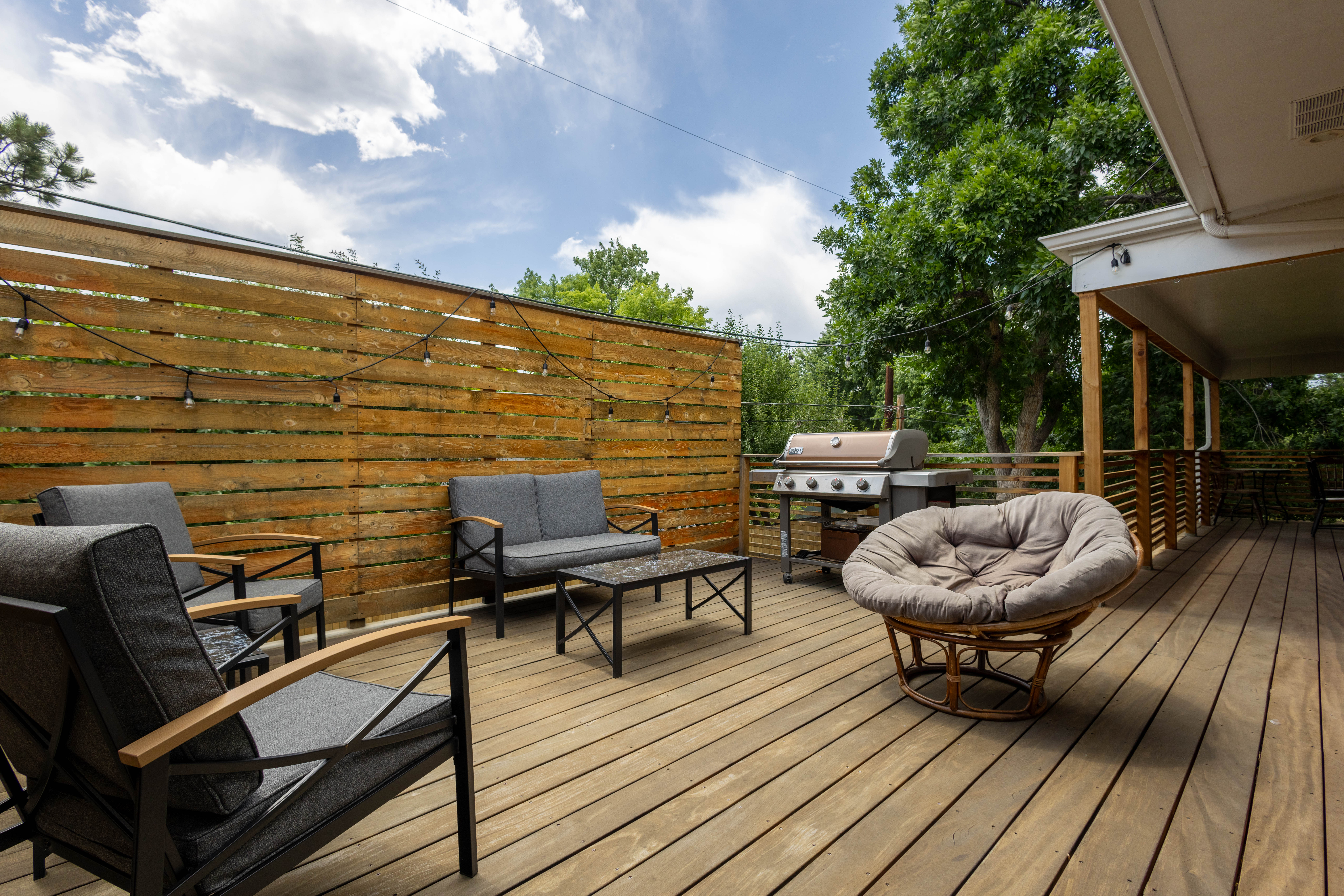 Enjoy the massive back deck! Fire up the BBQ grill and savor a delicious meal at the outdoor dining table, or relax on the outdoor couch. Kick back under the stars around the wood-burning fire pit (just bring your own wood). The yard is fully fenced, making it perfect for kids and pets to roam free. Driveway and ample street parking are available.