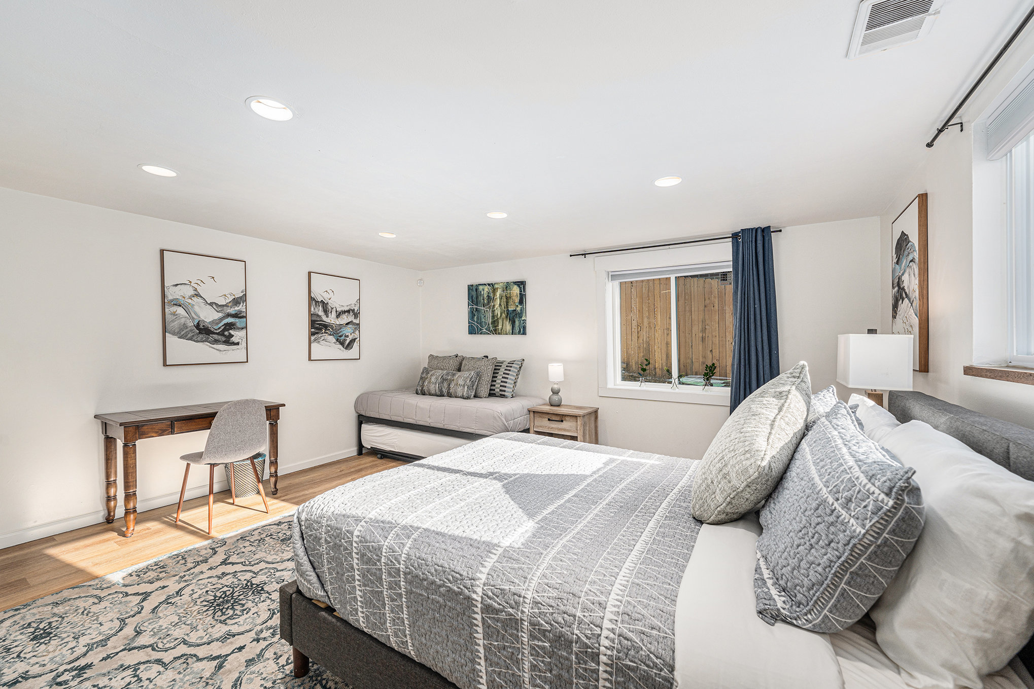 ✔ Bedroom 3: QUEEN BED + 2 TWIN BEDS + Desk, downstairs