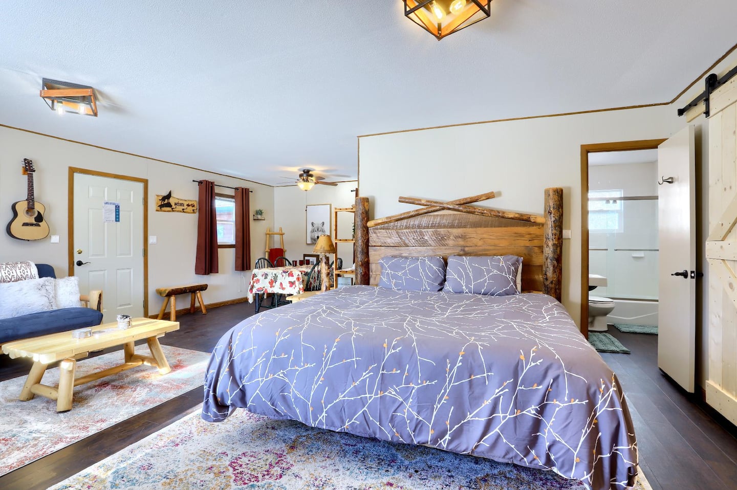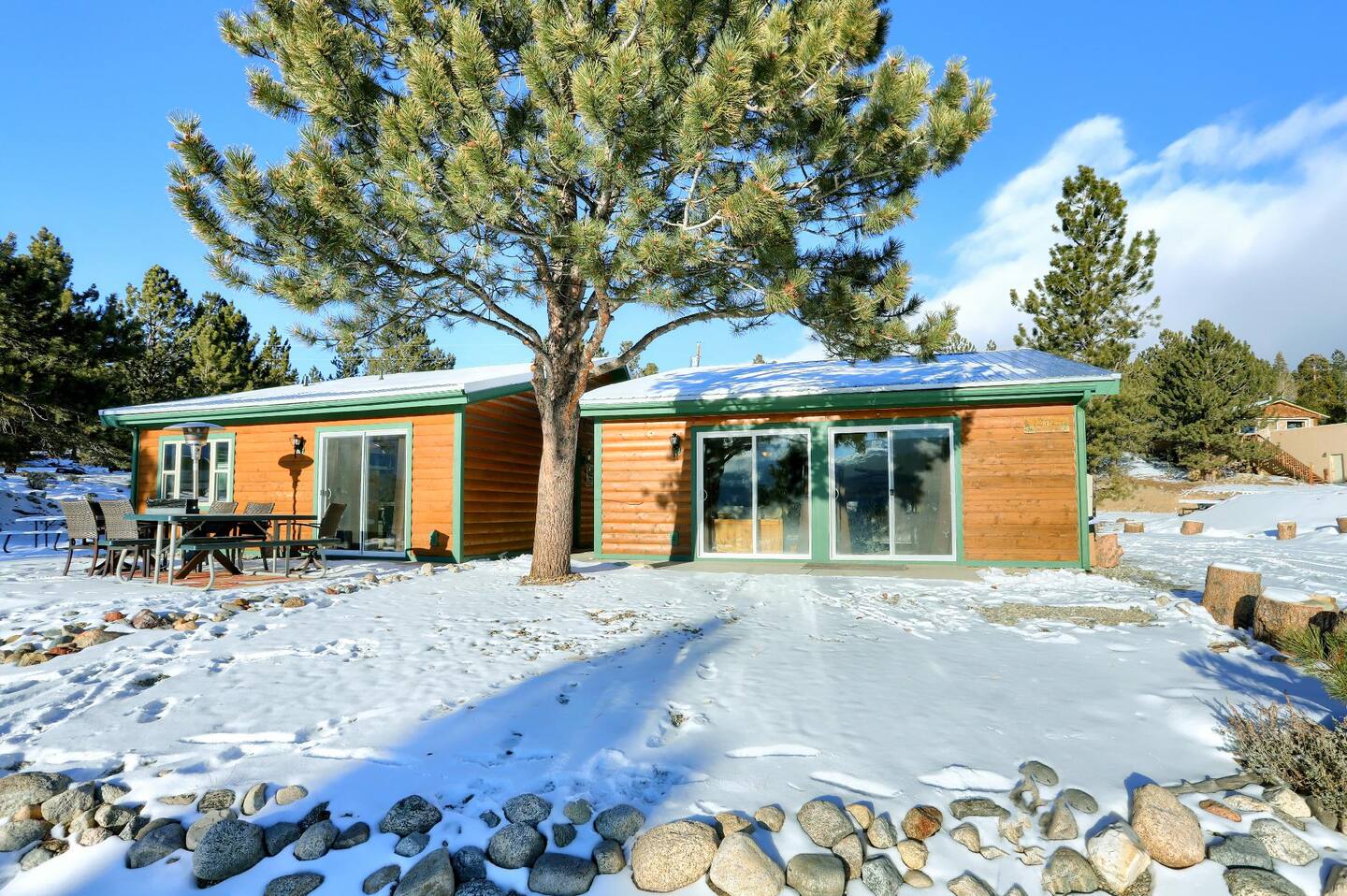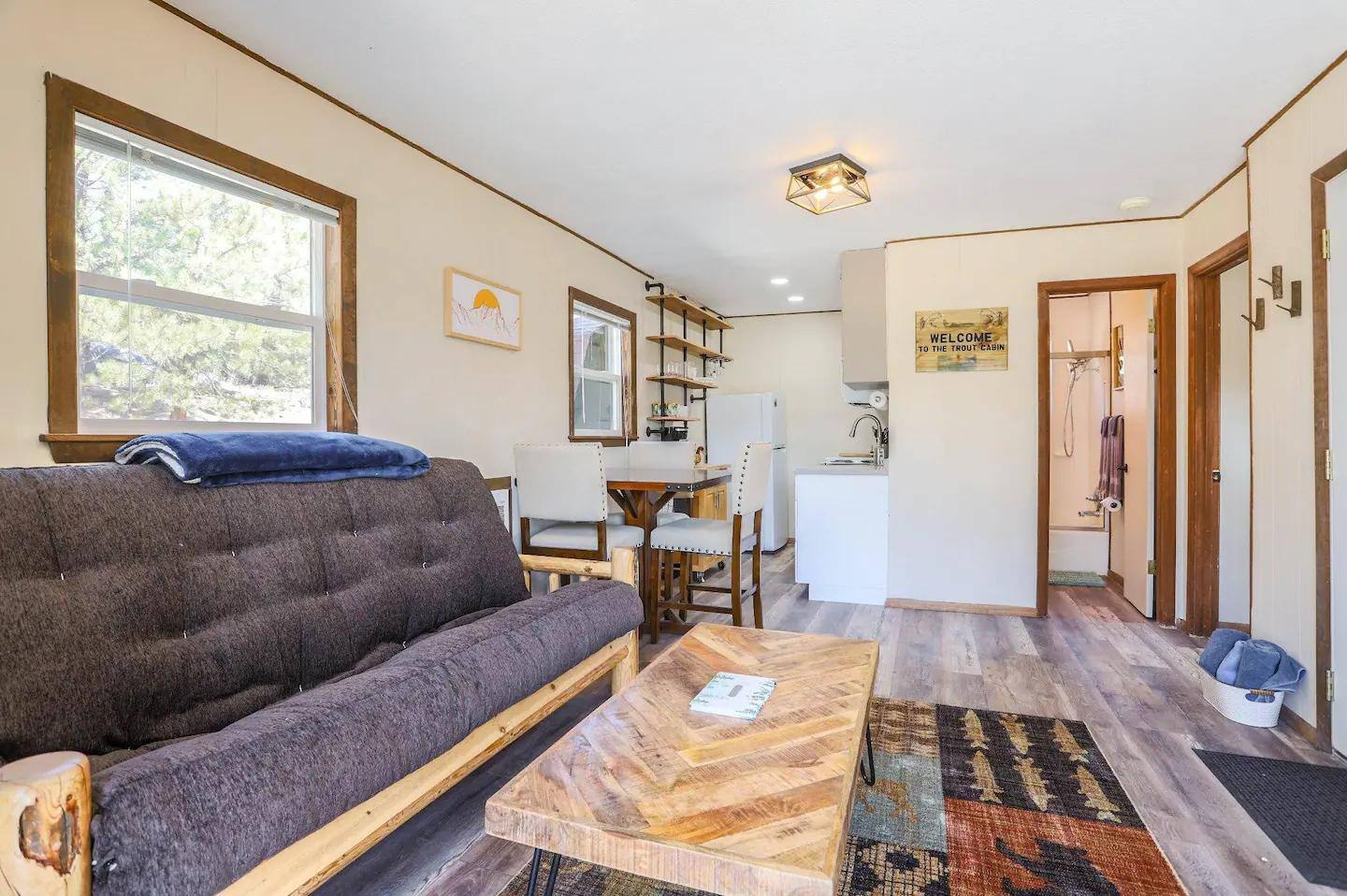 Step outside to the fire pit and breathe in the mountain air. The property’s setting offers views of Twin Lakes, where the landscape shifts with every hour—from sunrise reflections to glowing sunsets. Free parking is available on-site and on the street, and each cabin has a private entrance for ease and privacy.