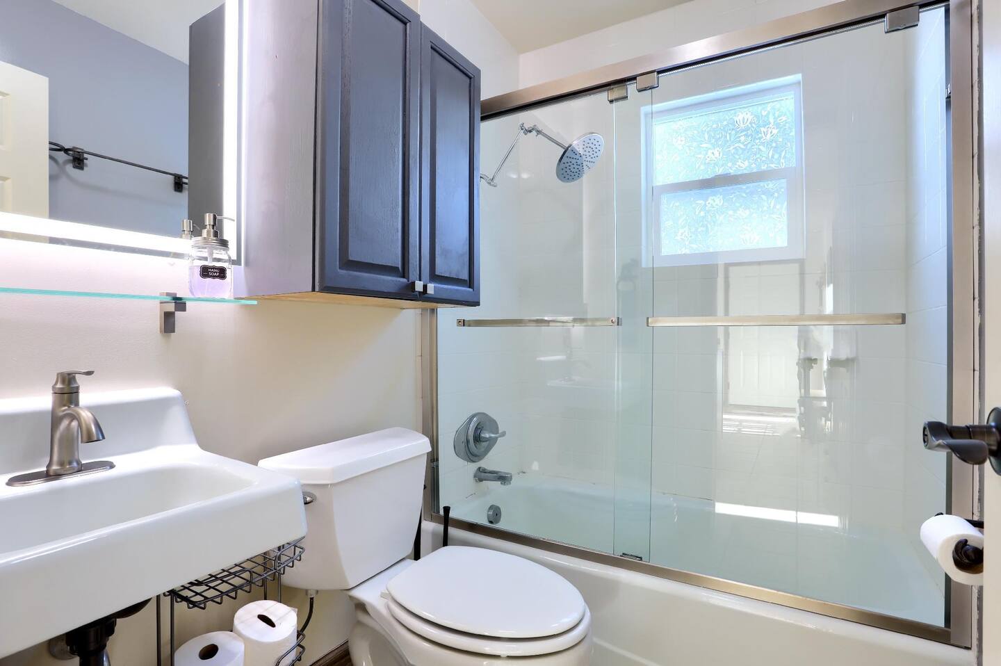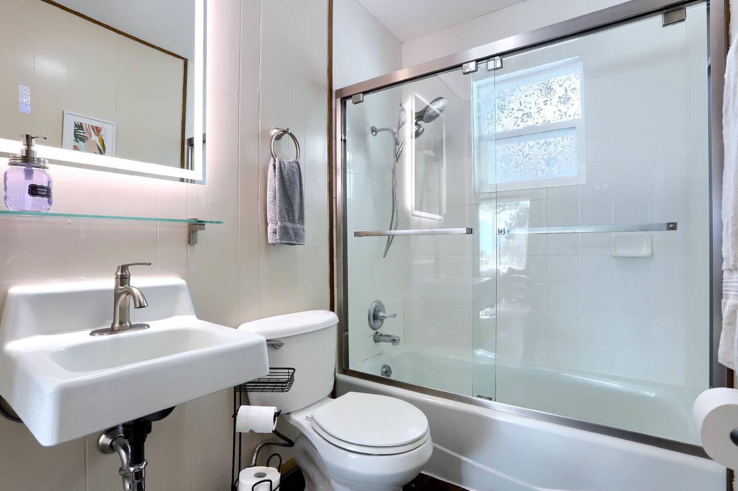Each bathroom provides a bathtub or shower, hot water, and bathroom essentials such as towels, soap, and shampoo. A washer and dryer are available for convenience during longer stays.