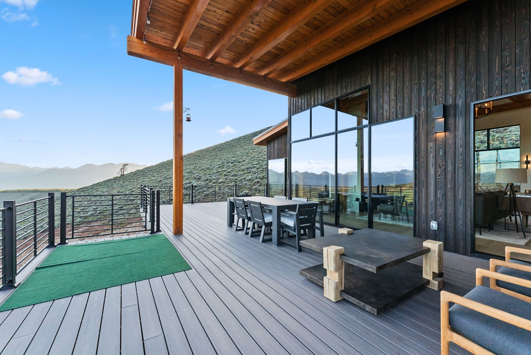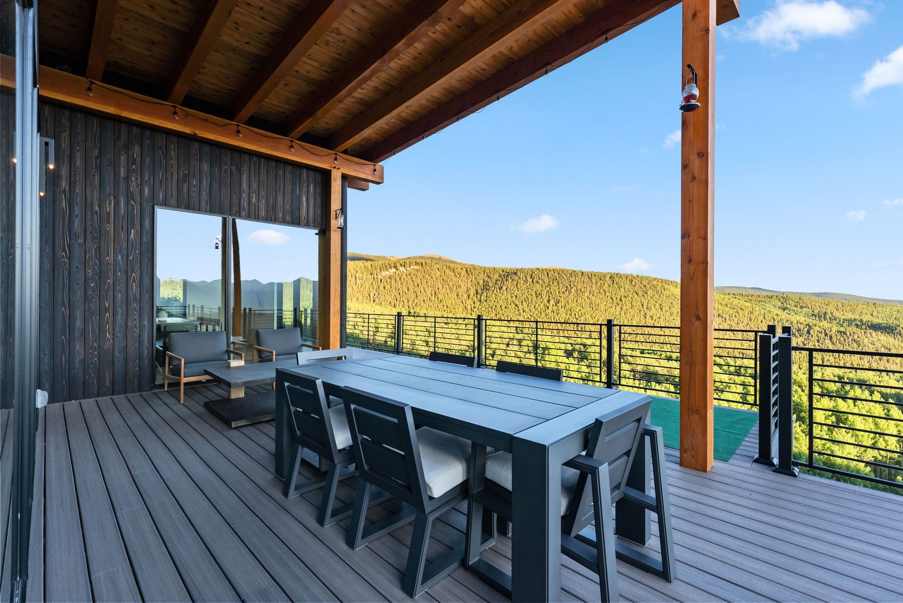 Unwind on the spacious deck with cozy outdoor seating—ideal for morning coffee, sunset chats, or stargazing under Colorado skies. Breathe in the fresh mountain air and take in the peaceful surroundings. Majestic mountain views stretch in every direction, offering a truly breathtaking and ever-changing backdrop. Whether you're watching the sun rise over the peaks or admiring the colors of dusk settle over the ridges, the scenery is nothing short of spectacular. A grove of aspen trees below the cabin is perfect for fall leaf peeping. Parking is readily available in the garage and driveway.