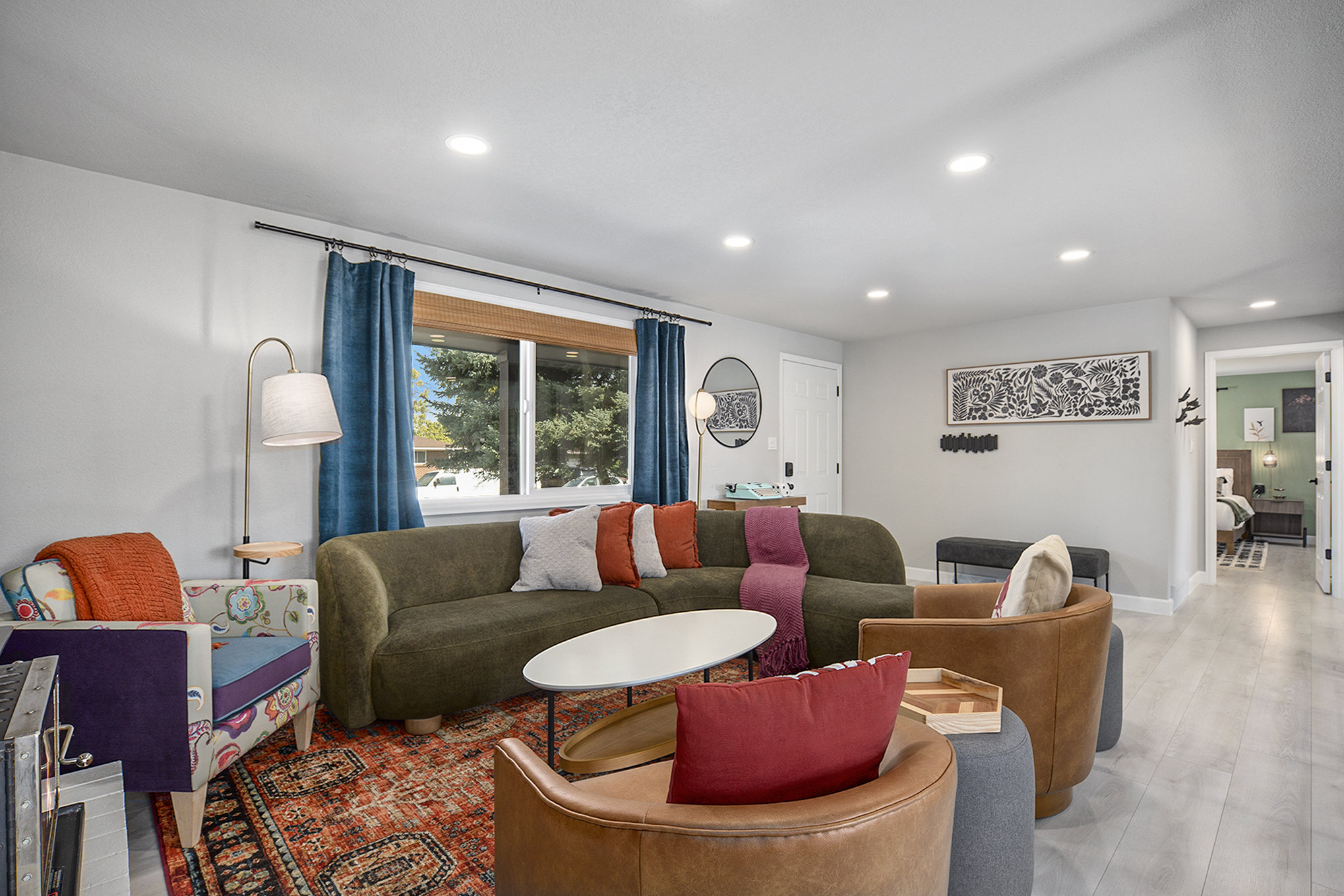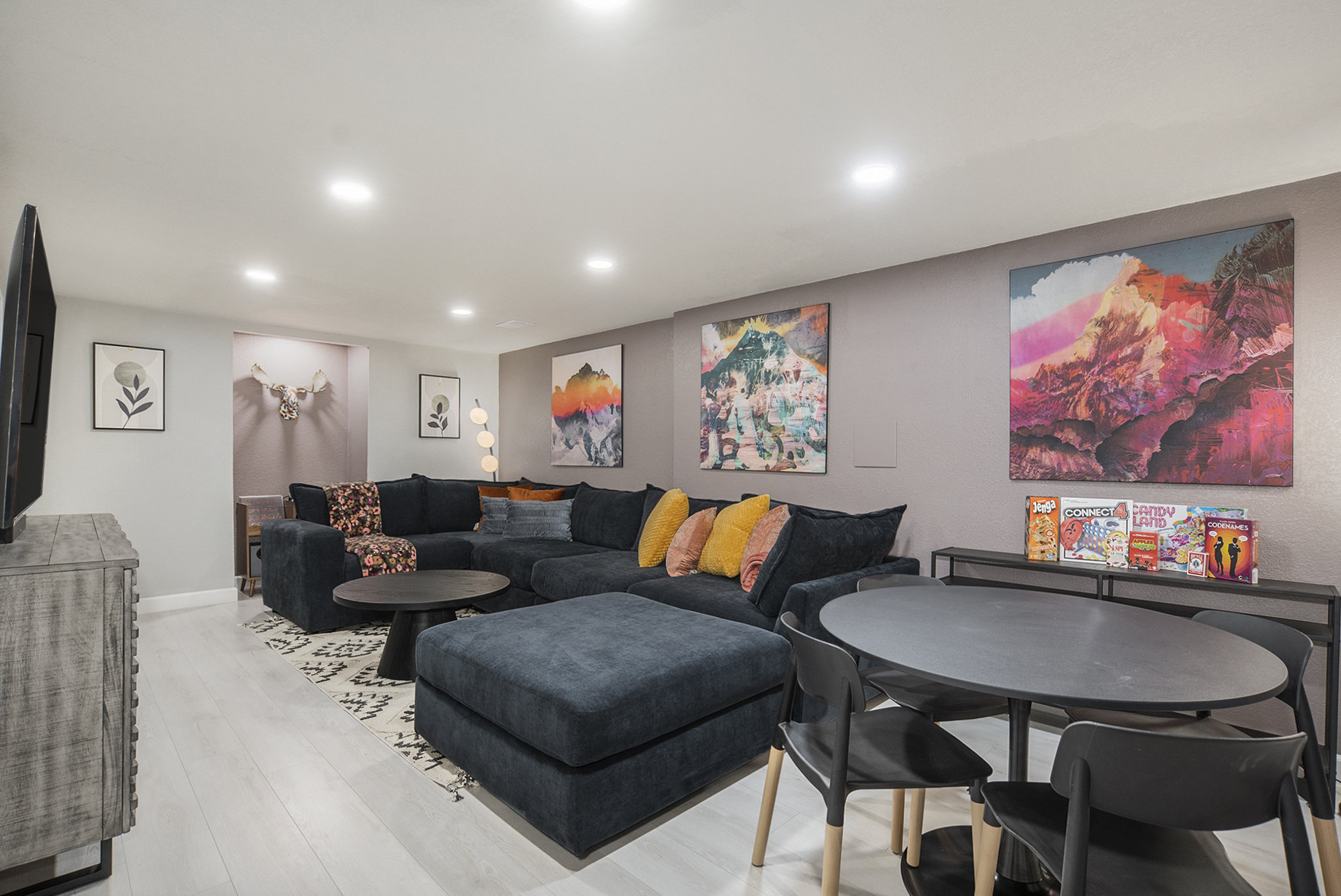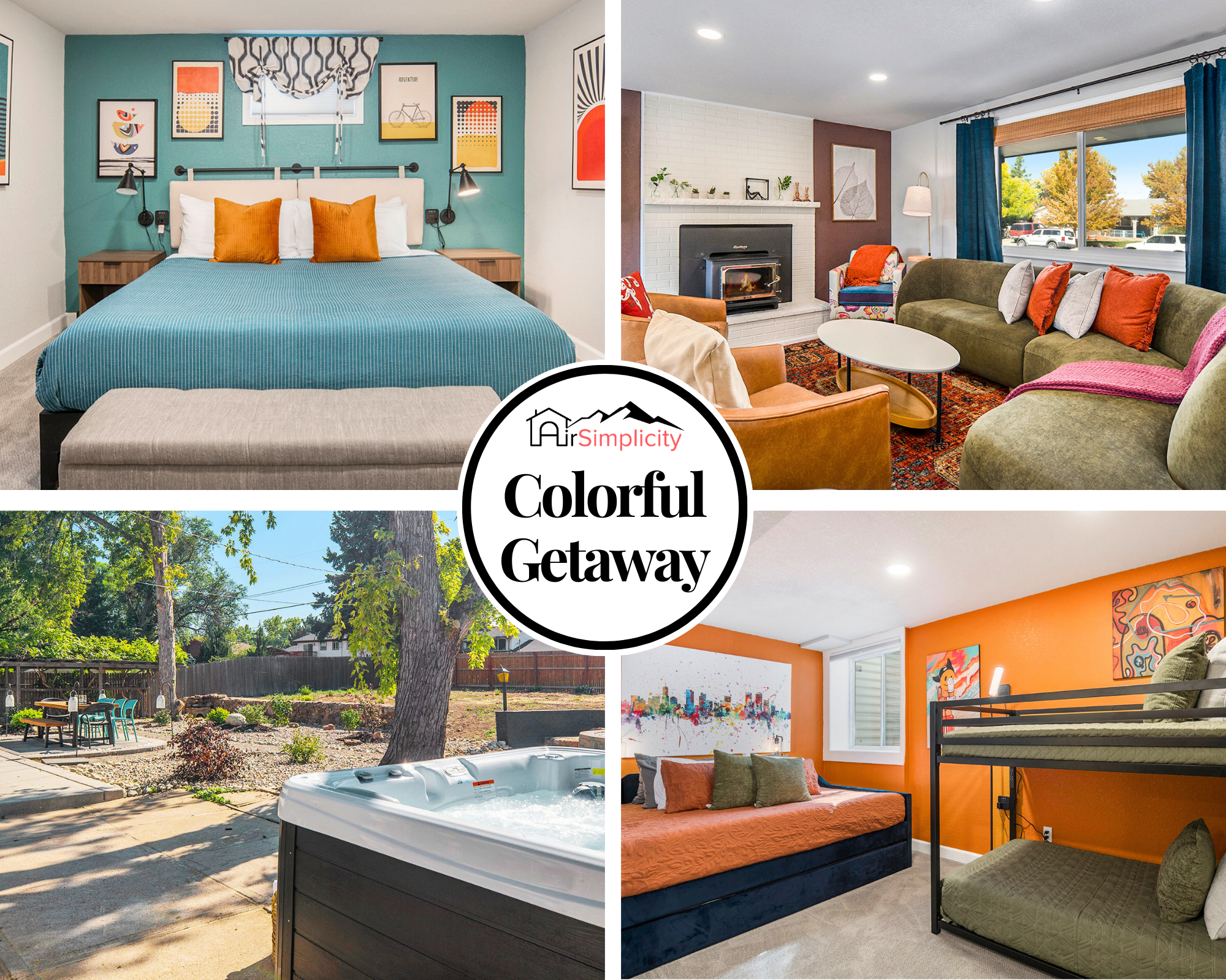 Welcome to the Colorful Getaway! This vivacious home offers plenty of room to spread out, with two living rooms, a large dining table, and an enchanting outdoor space featuring a dining area, grill, hot tub, and cozy firepit. The converted garage is now a swanky lounge with a pool table, perfect for fun gatherings. Downstairs, enjoy a comfortable space with a large TV and couch, plus a kids room with bunk beds. A short drive to Downtown Denver, Golden, or Boulder, this location cannot be beat!