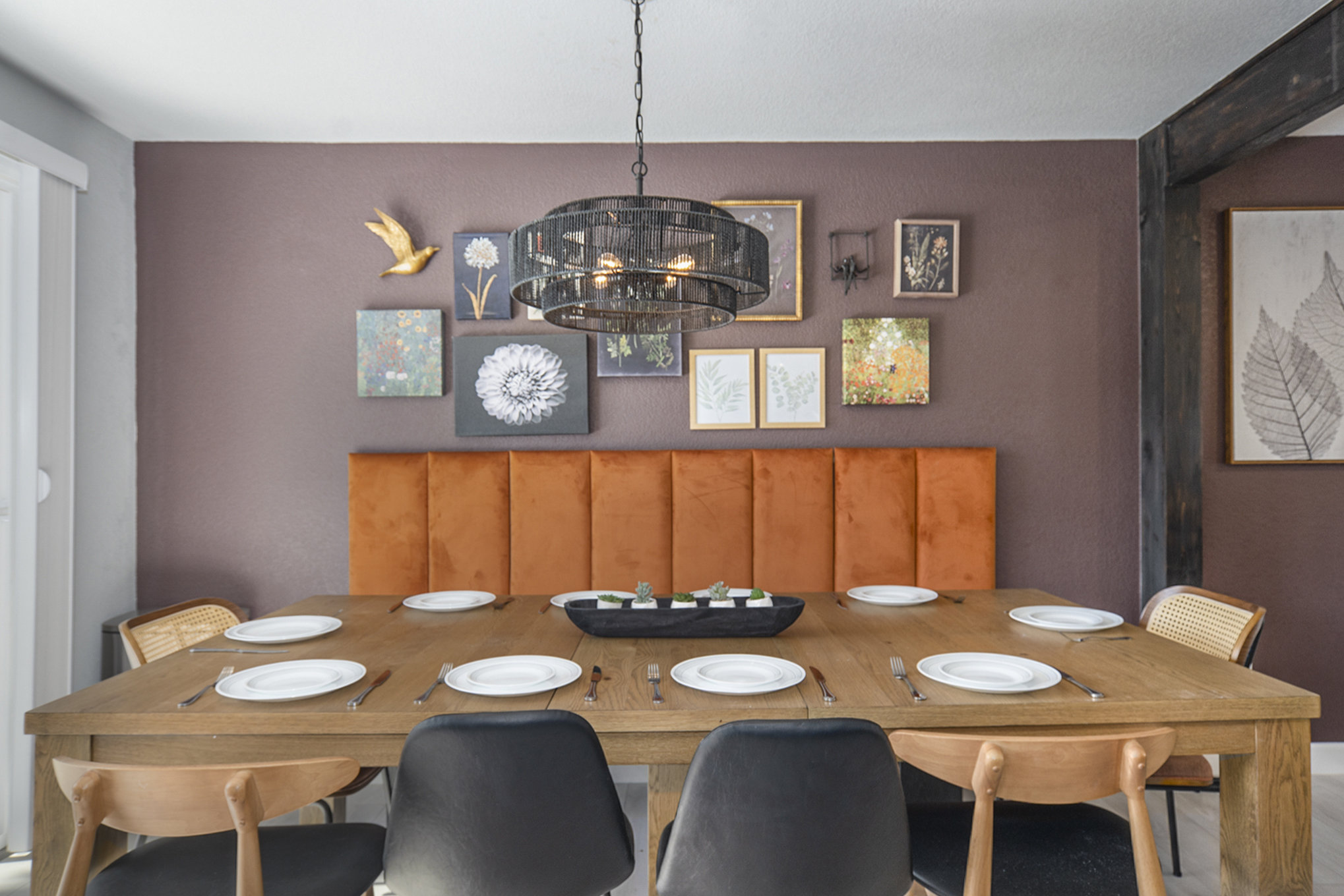 The dining table is perfect for gathering and sharing meals, with enough space to comfortably accommodate your group. For larger gatherings, extra chairs and table leaf extensions are available, allowing you to expand the seating capacity and create a more spacious dining area.