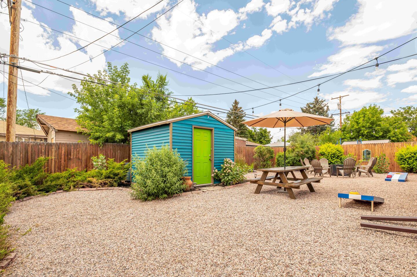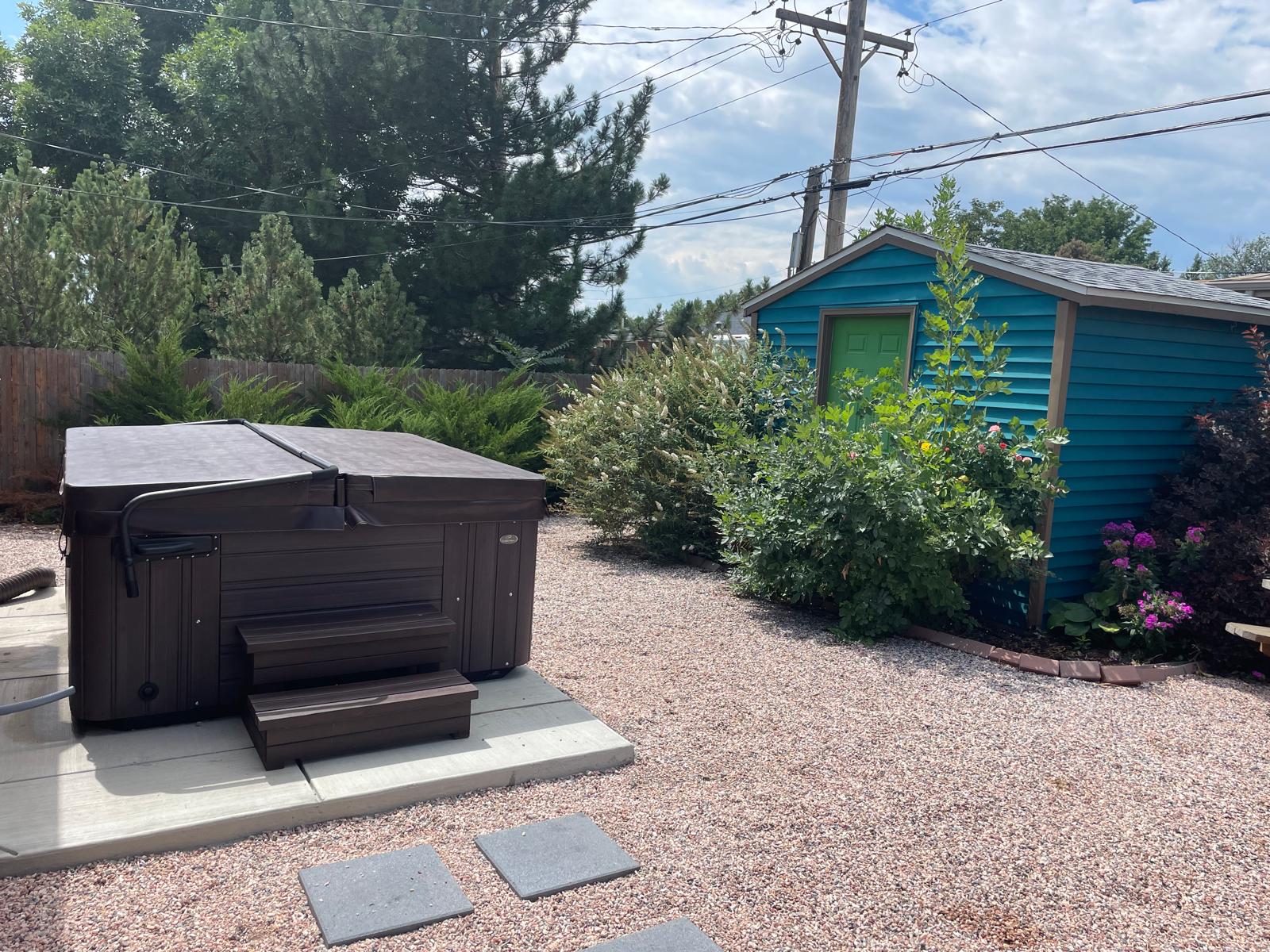 Step into your private fenced backyard, where a fire pit and BBQ grill await. In winter, the fire pit becomes a cozy gathering spot for roasting marshmallows under the stars. The space includes outdoor furniture and a picnic table, making it easy to enjoy fresh air year-round. A hot tub is also available for a relaxing soak after a day of exploring Denver’s trails or cultural attractions.