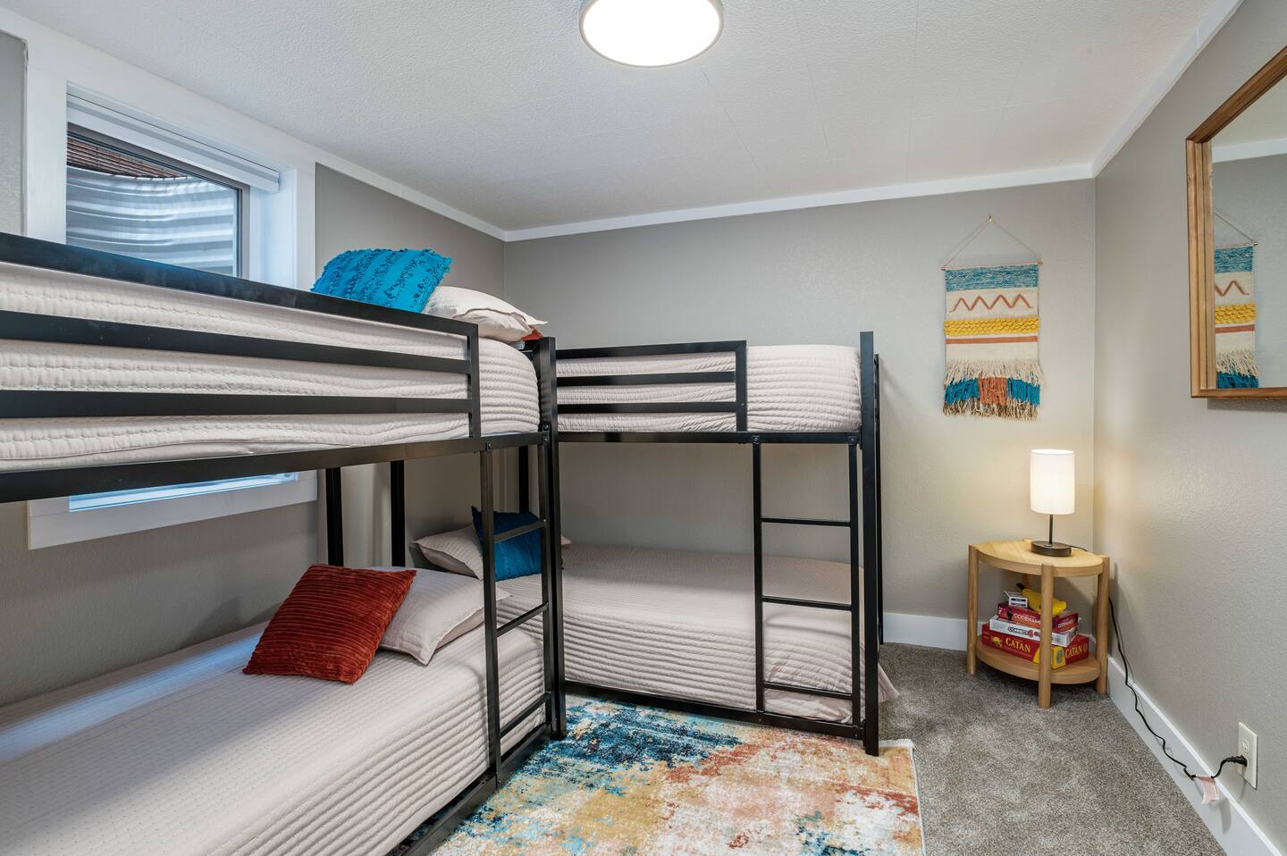 This home sleeps up to 10 guests across 4 bedrooms and 7 beds. On the main floor, two spacious bedrooms feature king beds with fresh linens, while downstairs offers a queen bedroom and a playful bunk room with twin bunk beds—perfect for kids or friends sharing space. Every bed has memory foam mattresses, extra pillows, and room-darkening shades to ensure restful nights after exploring the Mile High City.