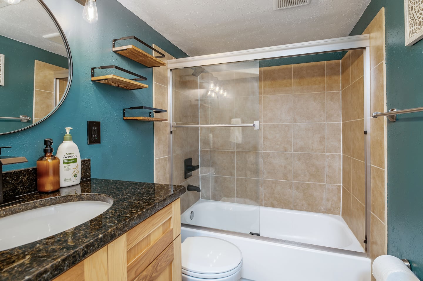 Bathrooms fully stocked with shampoo, conditioner, and body wash.