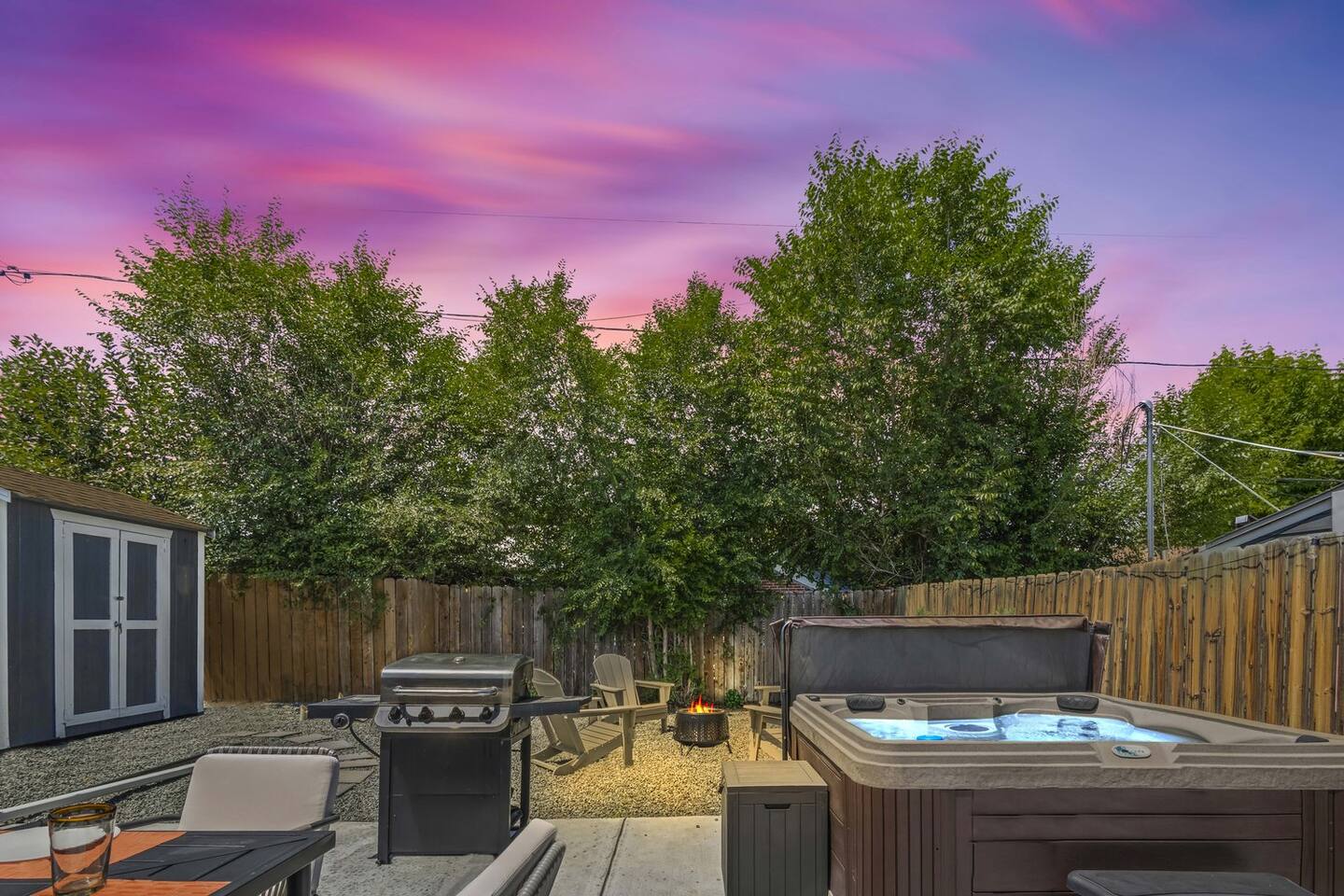 – Fenced yard w/ fire pit, BBQ & hot tub