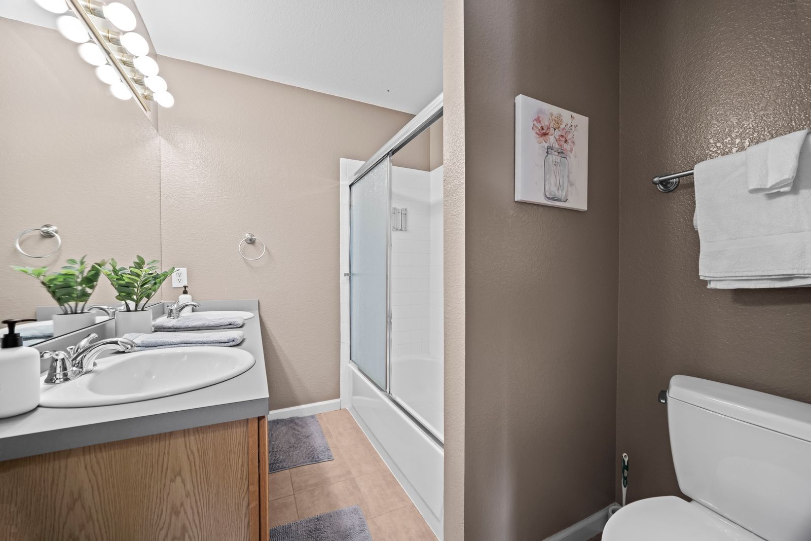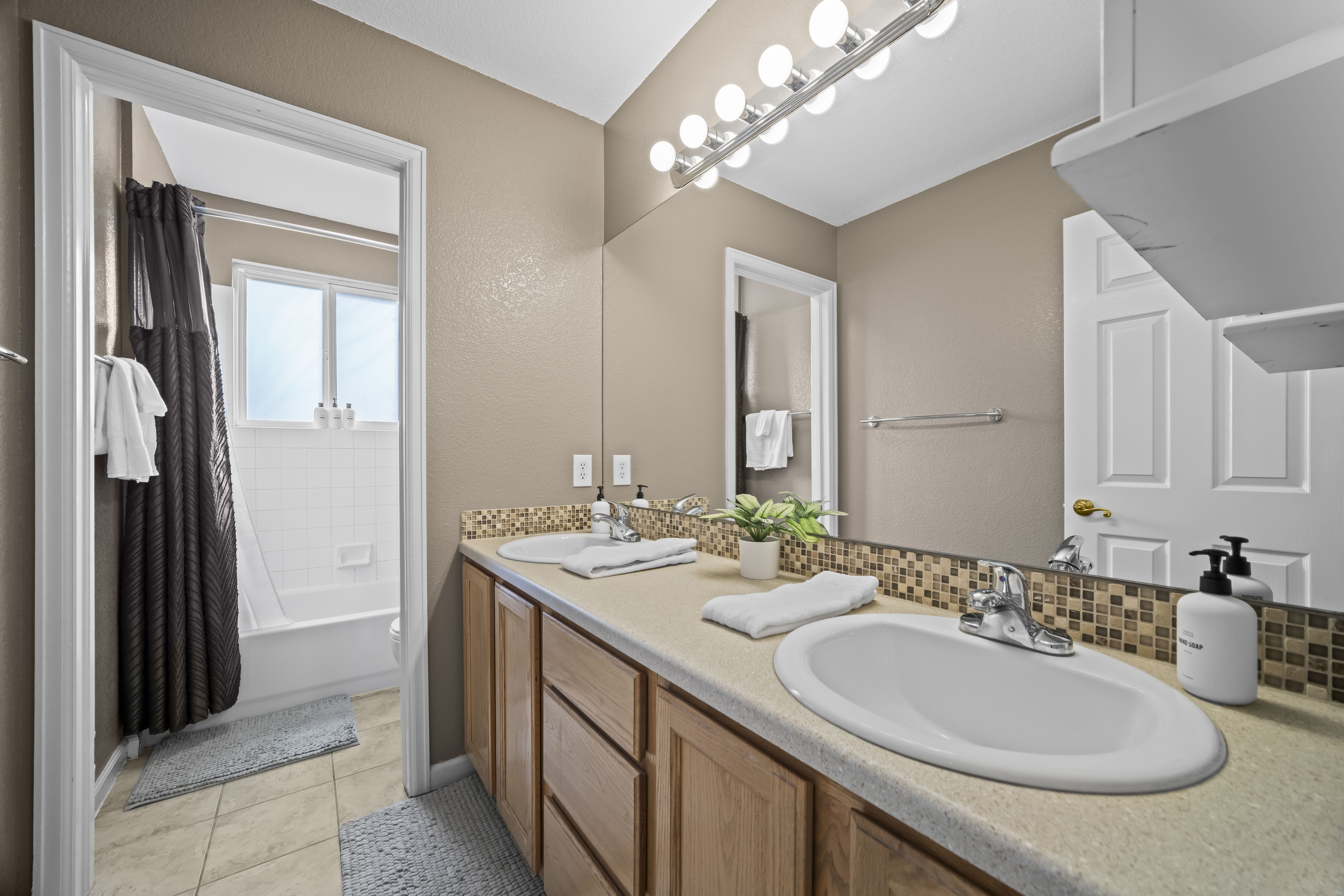 ✔ Bathroom 1: Double vanities, shower/tub combo, located upstairs