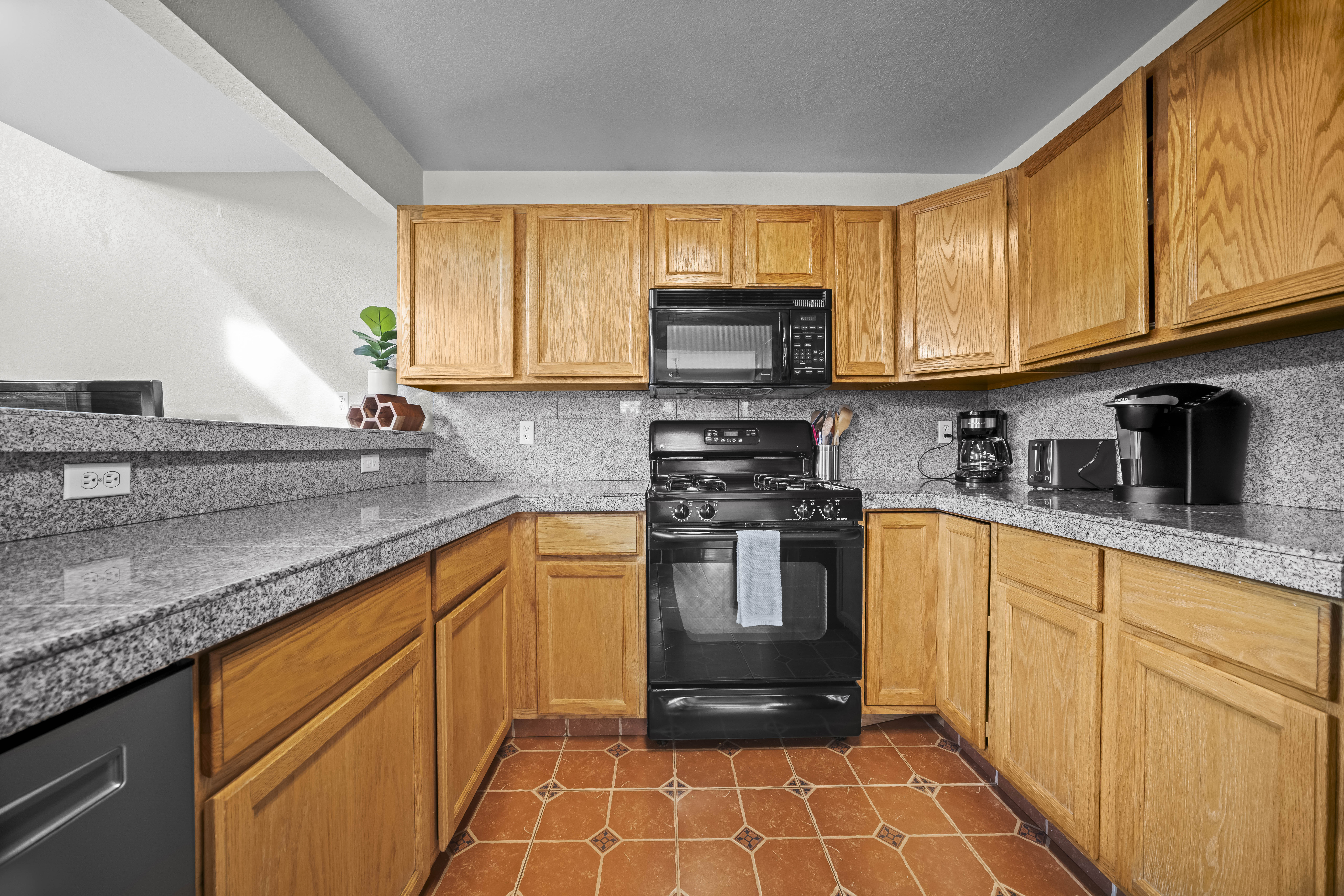 The kitchen is stocked with everything you need to cook like a pro, from cookware and bakeware to stylish dishware. Start your mornings with the drip coffee maker, complete with a generous supply of complimentary coffee.