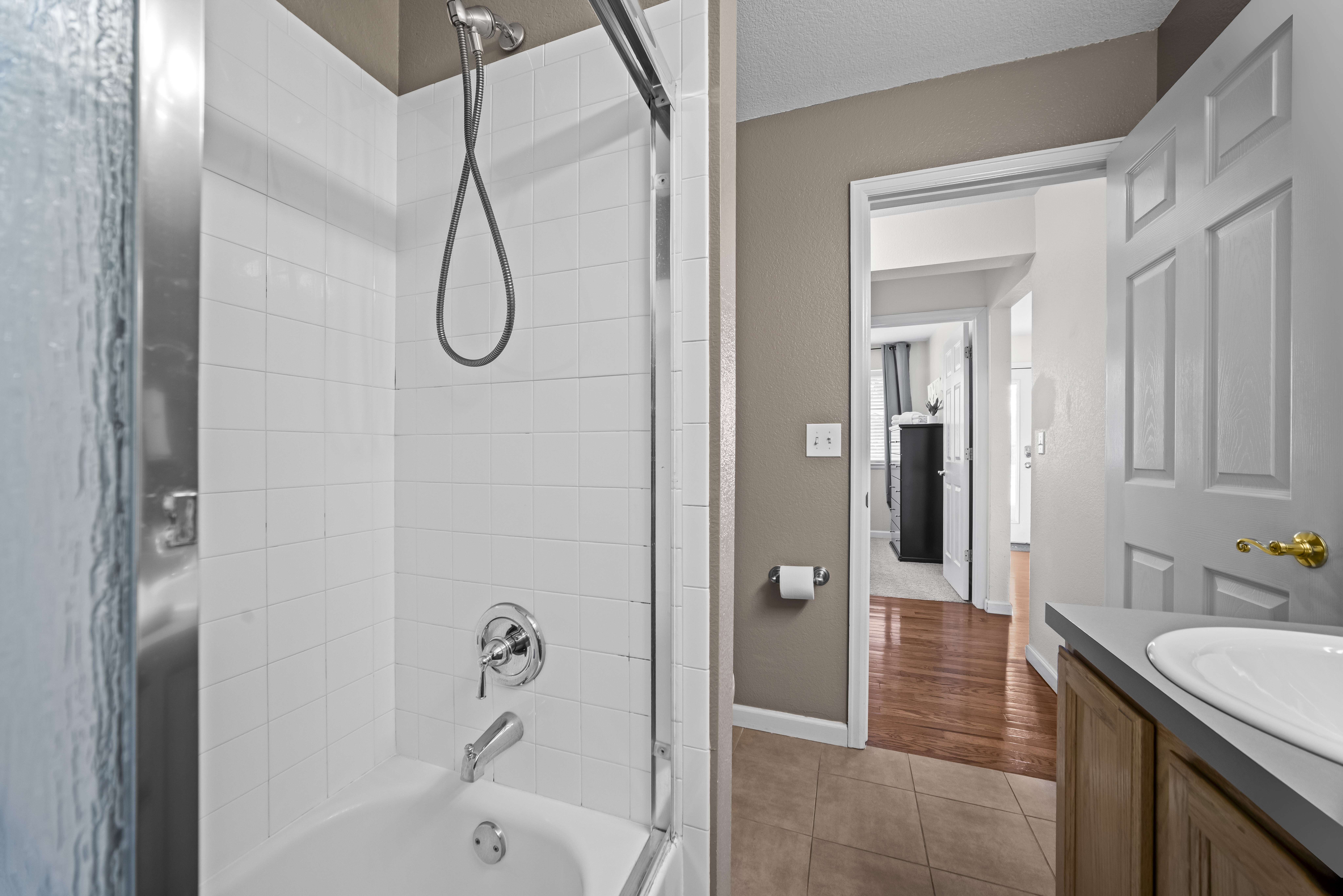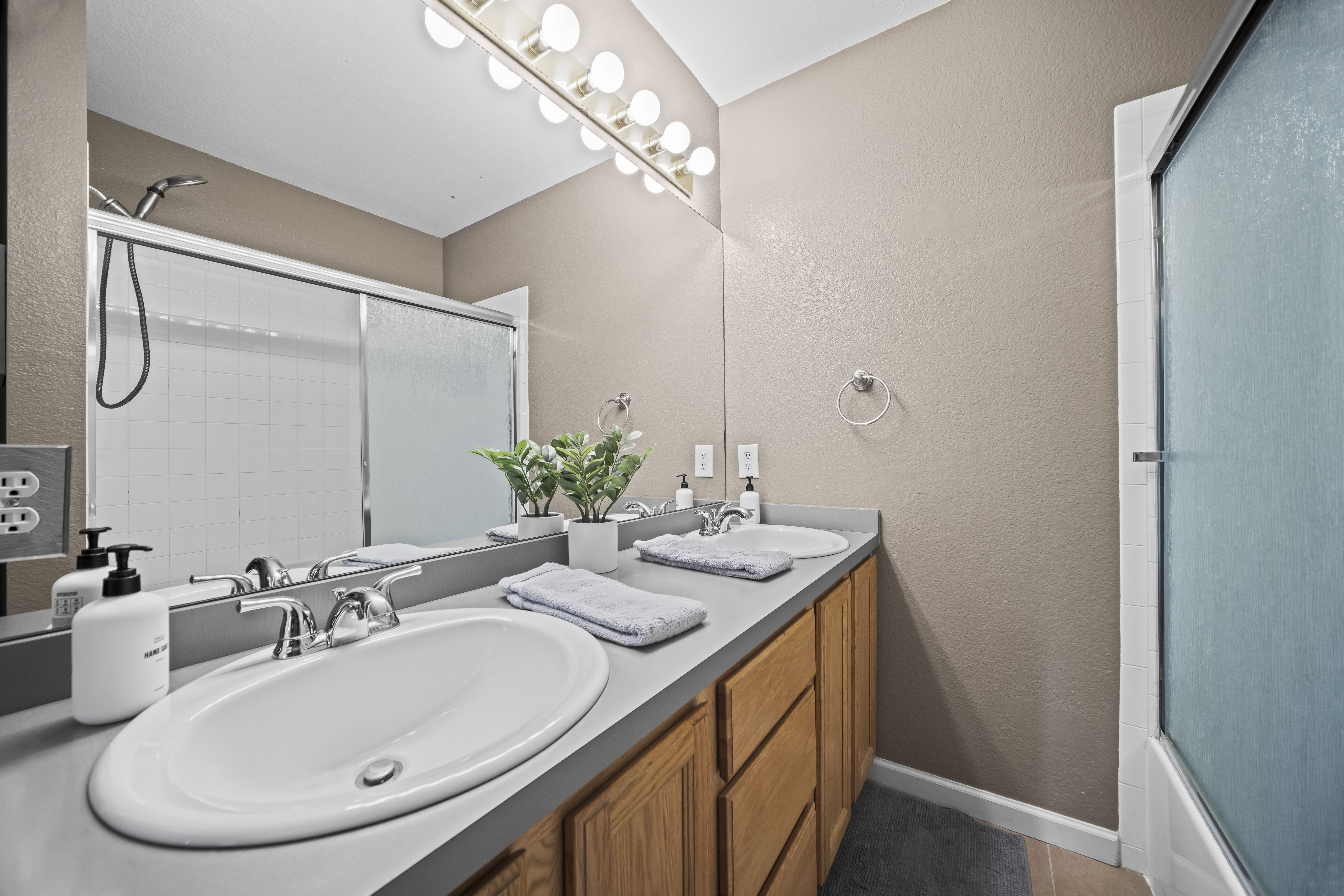 ✔ Bathroom 2: Double vanities, shower/tub combo, located off the kitchen