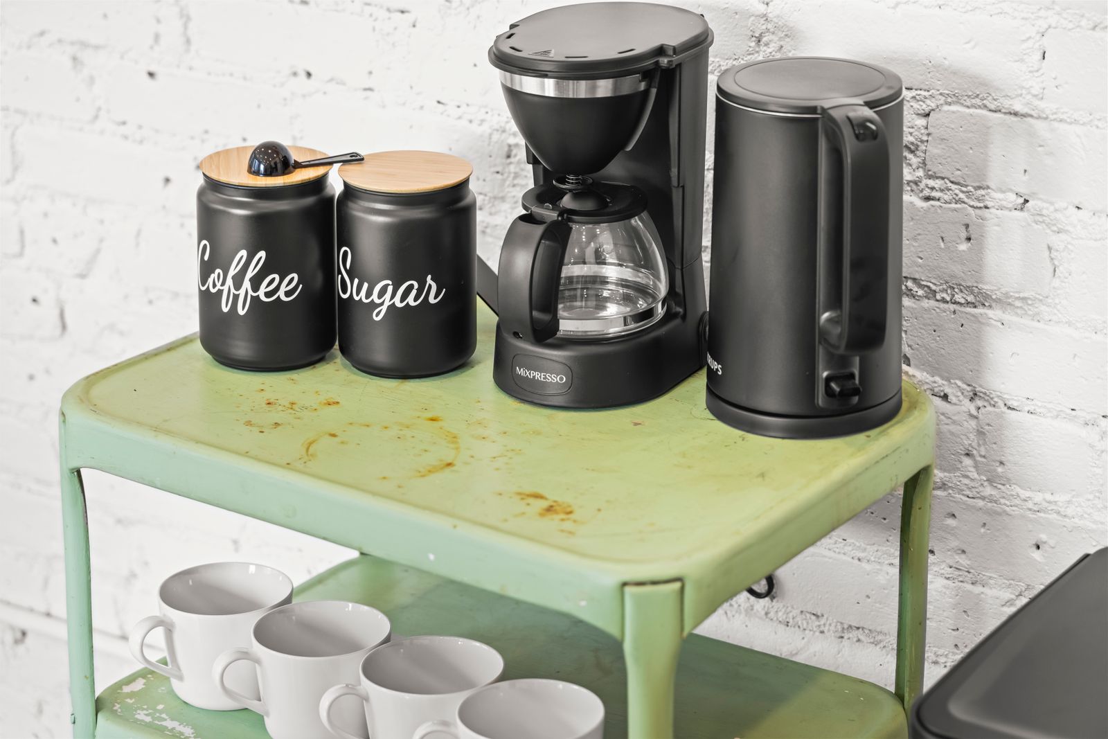 The kitchen is stocked with everything you need to cook like a pro, from cookware and bakeware to stylish dishware. Start your mornings with the drip coffee maker, complete with a generous supply of complimentary coffee.