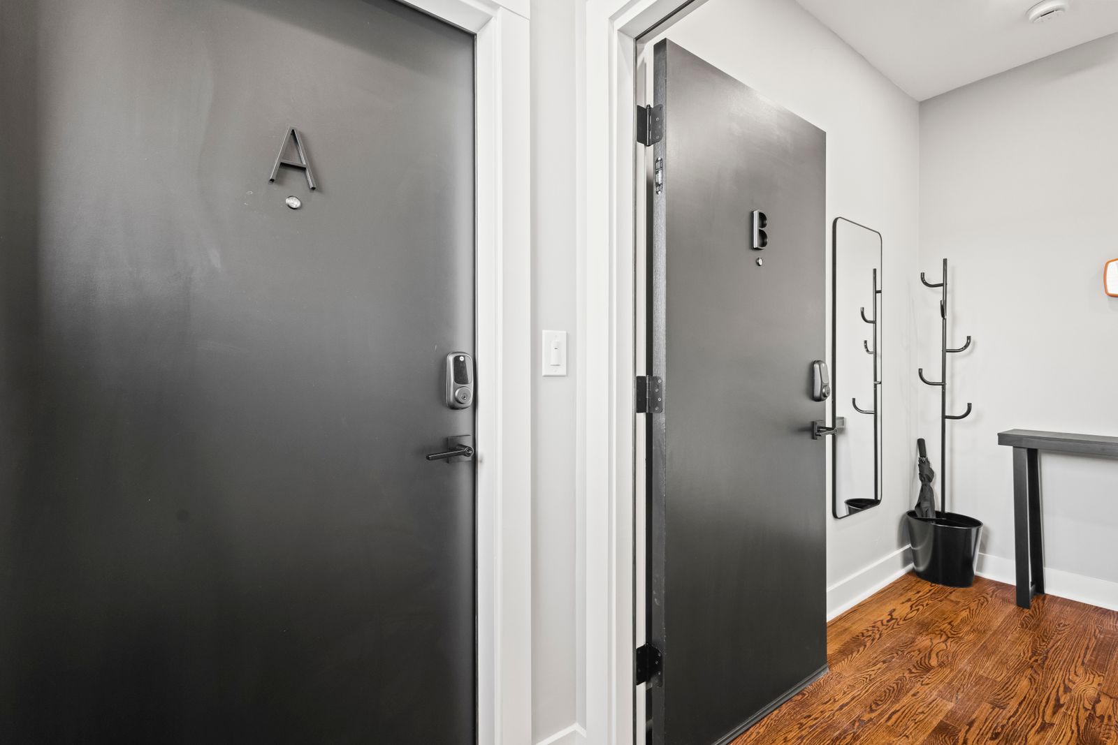 SECURITY CAMERAS: installed outside the unit, monitoring the exterior entrance.