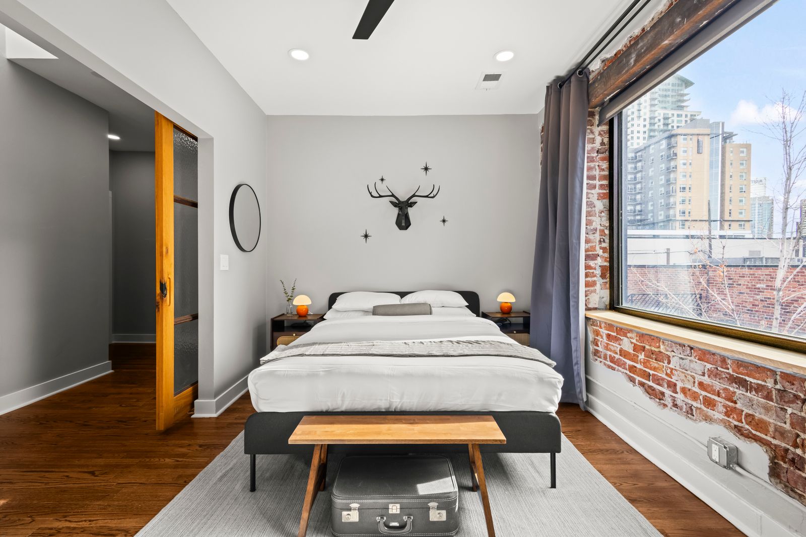 Enjoy stunning downtown Denver views from this modern, retro-inspired urban suite ideal for couples or solo travelers. Stay productive at the dedicated workspace, then unwind with the workout gear, board games, or your favorite shows on either of the TVs. The fully equipped kitchen, in-unit laundry, and all essentials make it feel like home. Perfectly located downtown Denver near top restaurants, shops, and attractions — your ideal mid-term stay in the heart of the city! 30+ night rentals only.