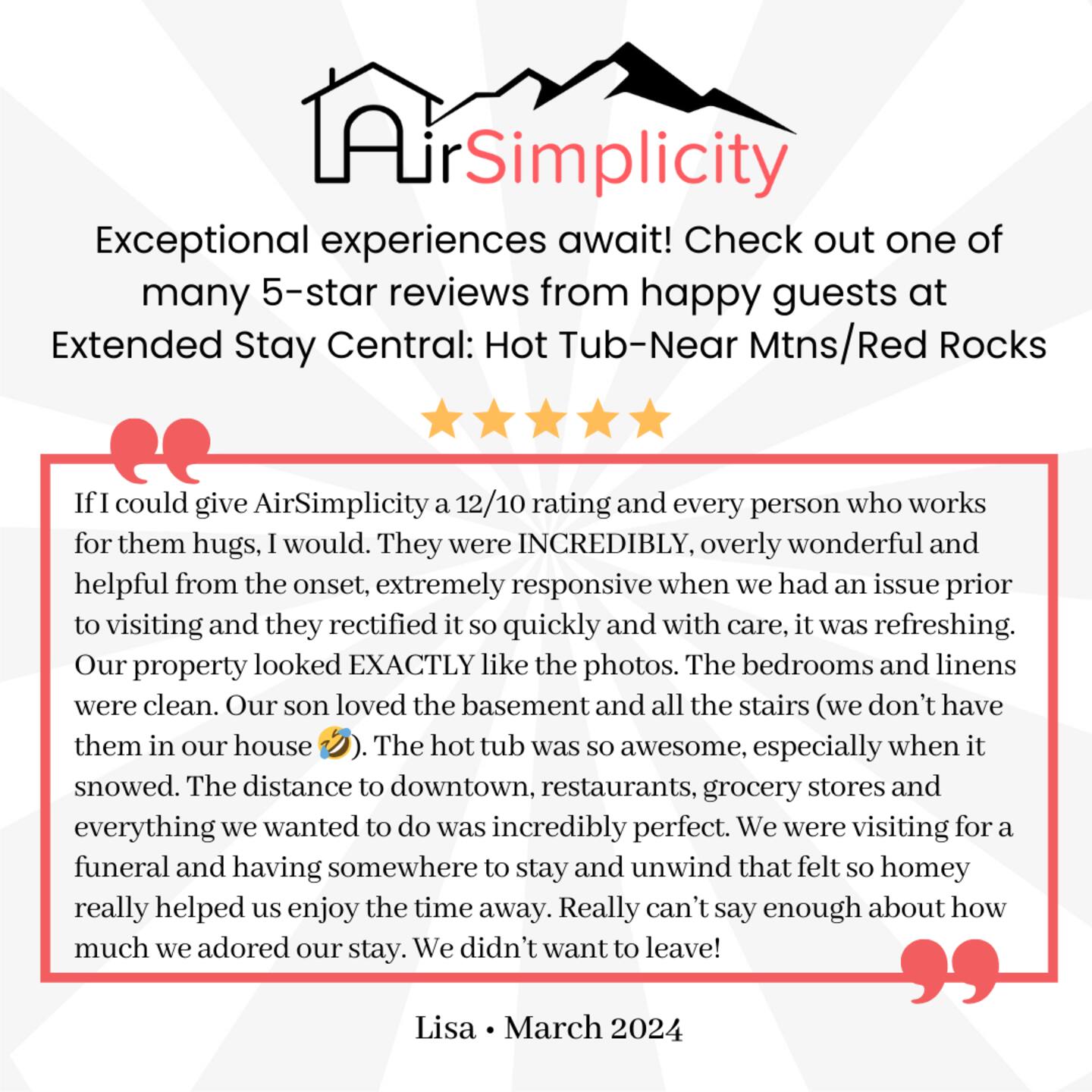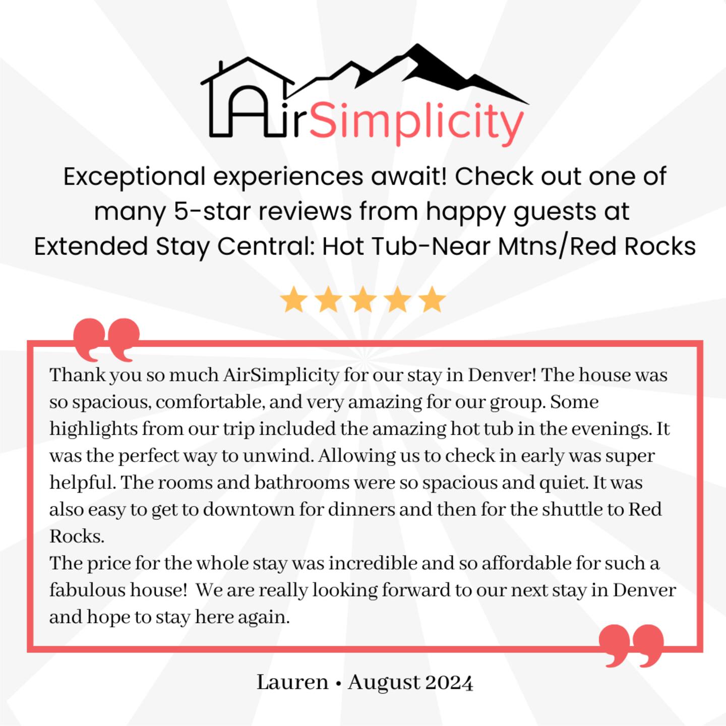 Thank you so much AirSimplicity for our stay in Denver