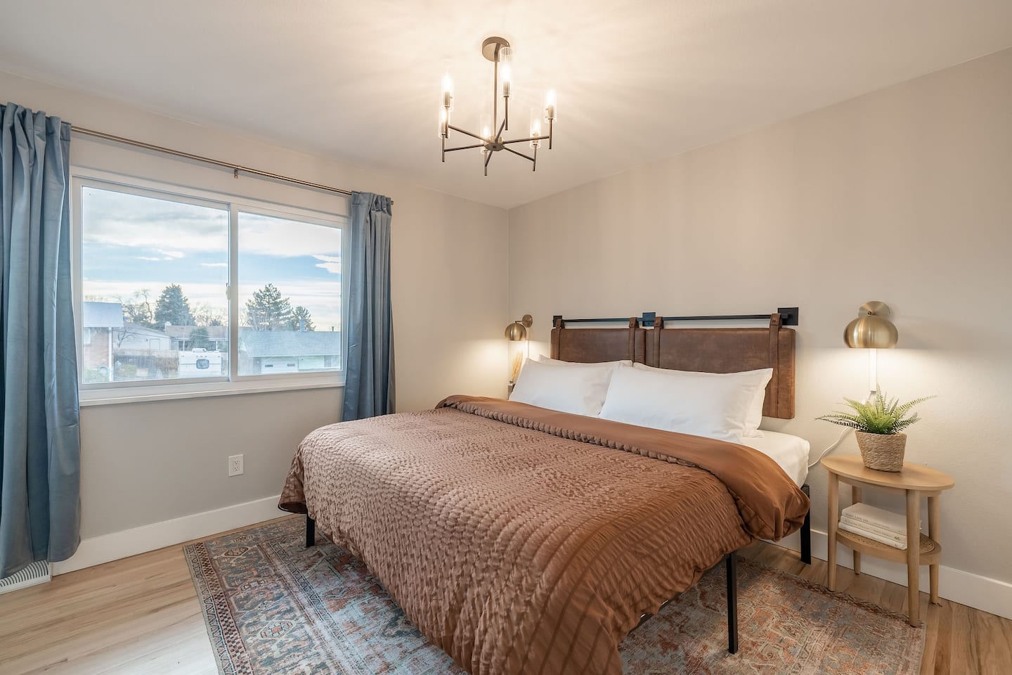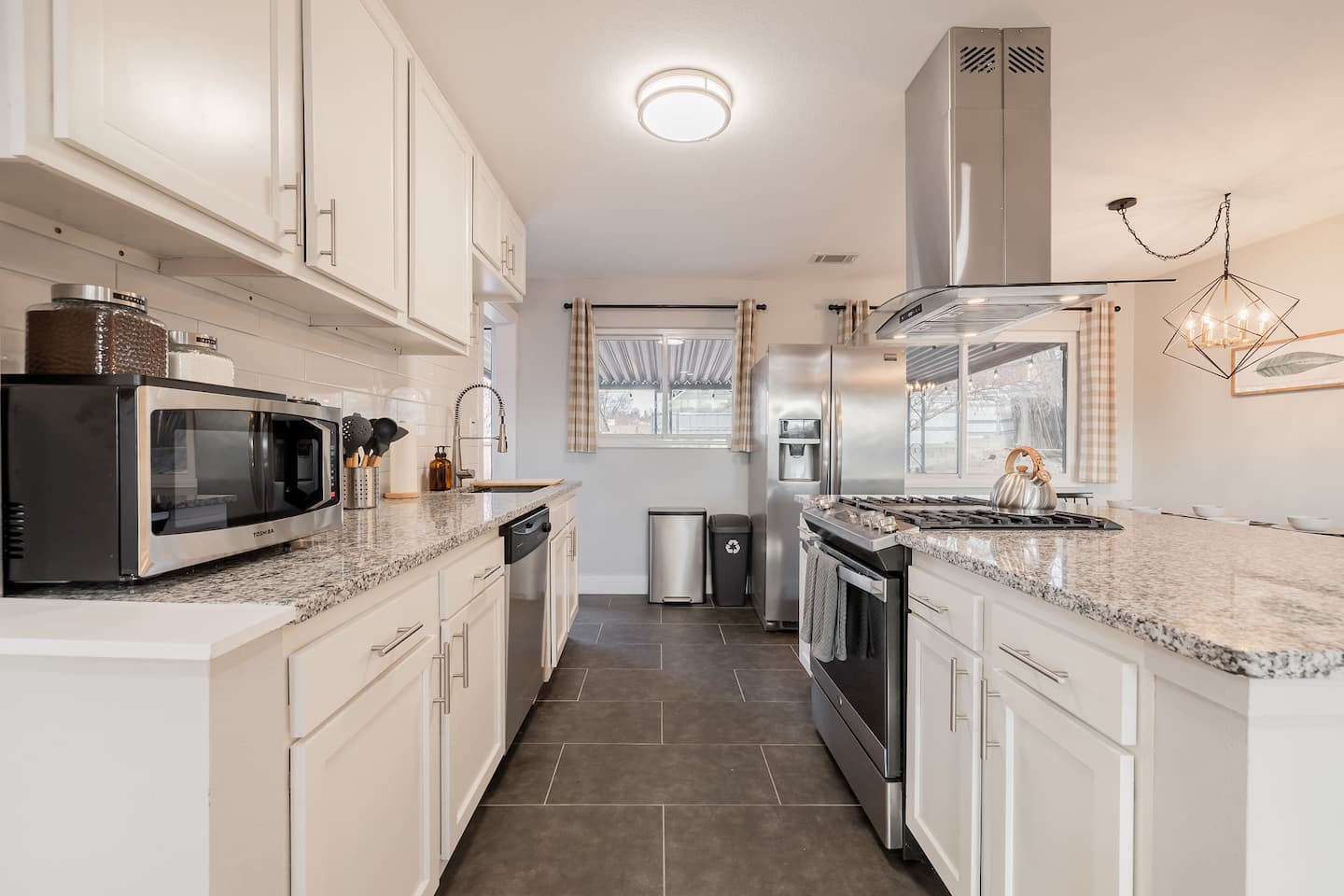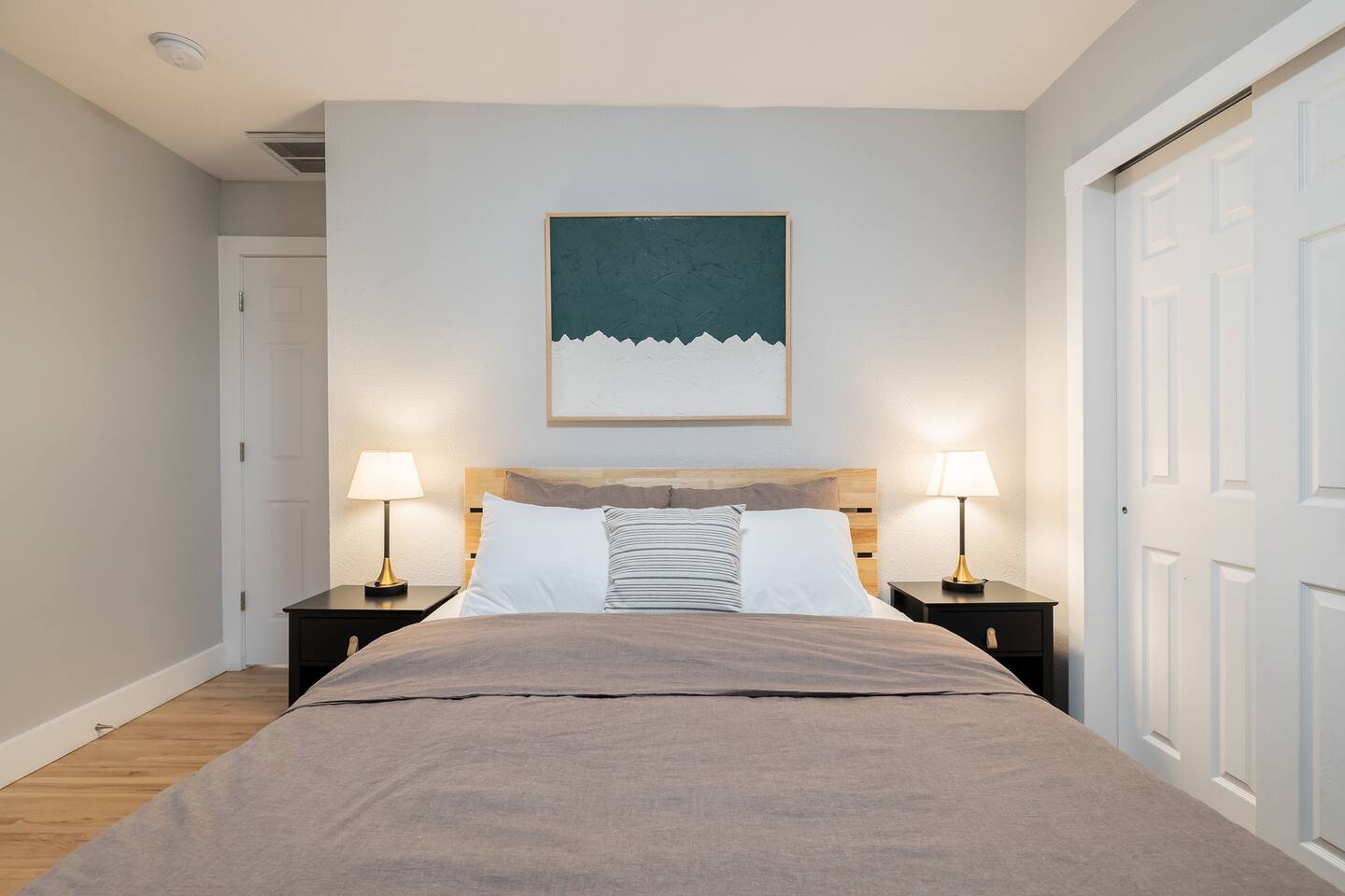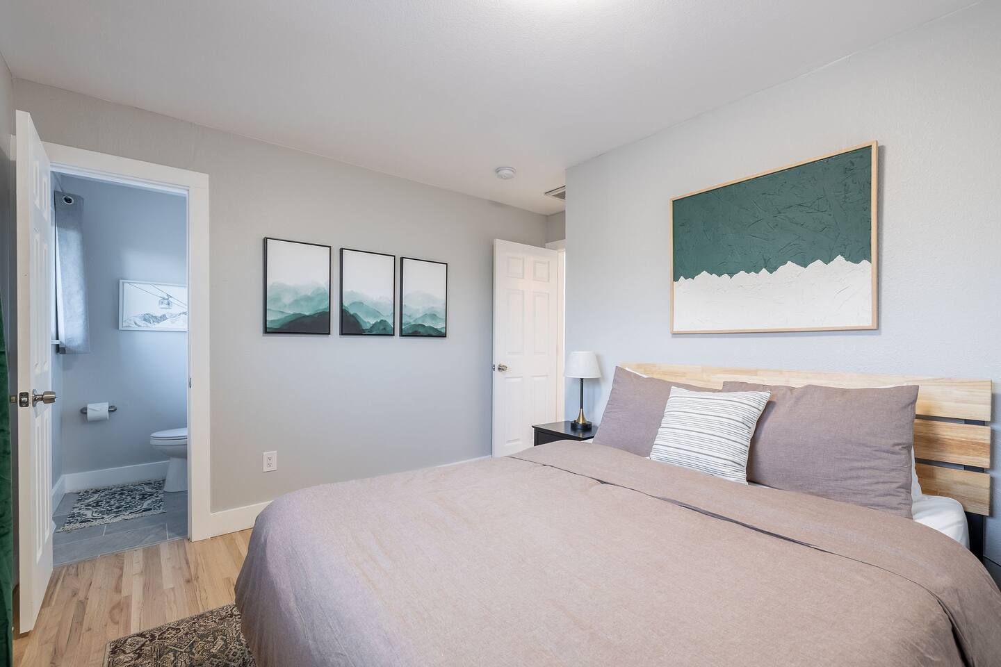 The fully equipped kitchen includes stainless steel appliances, a coffee maker, and all the basics you need to prepare your favorite meals. Gather around the spacious dining table for shared breakfasts before exploring Denver or evenings filled with laughter and comfort food.