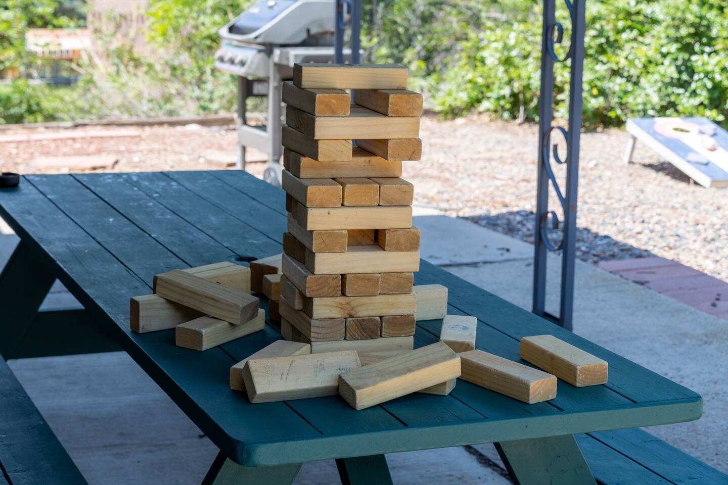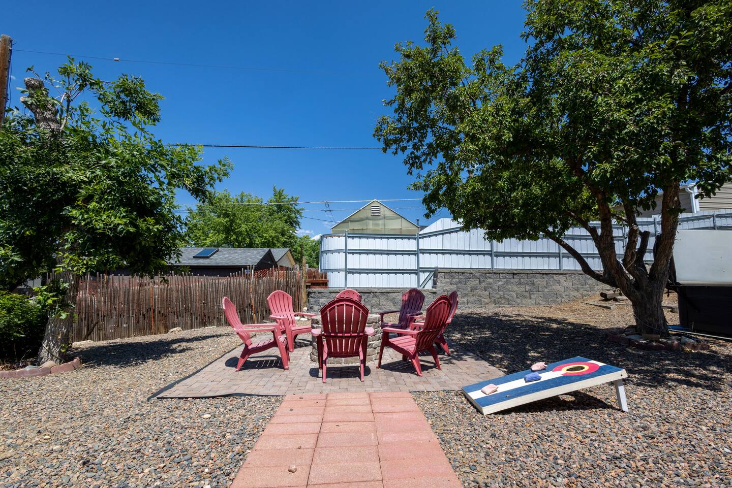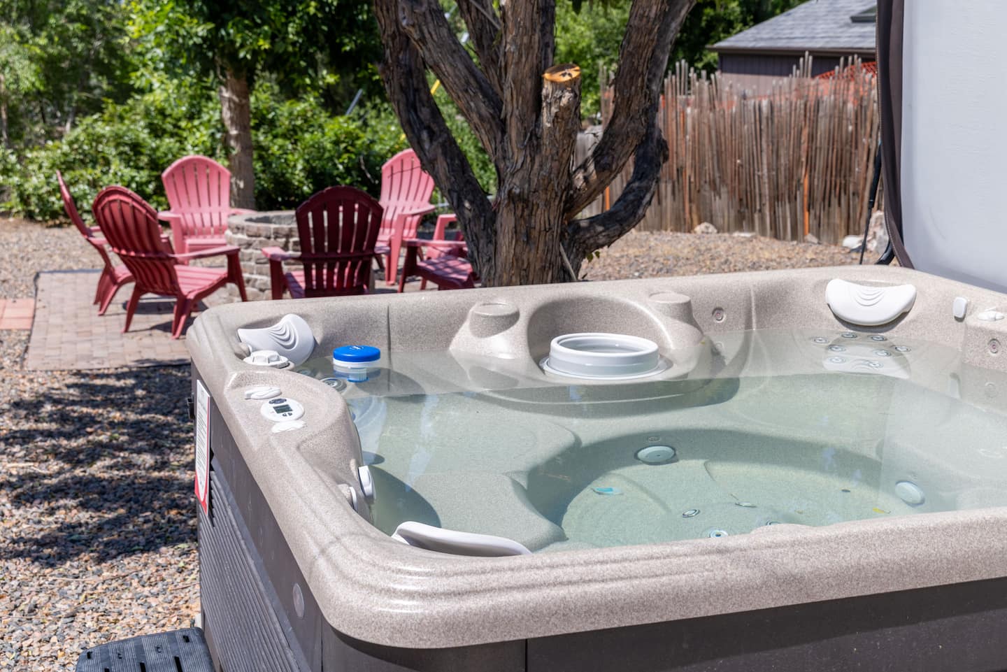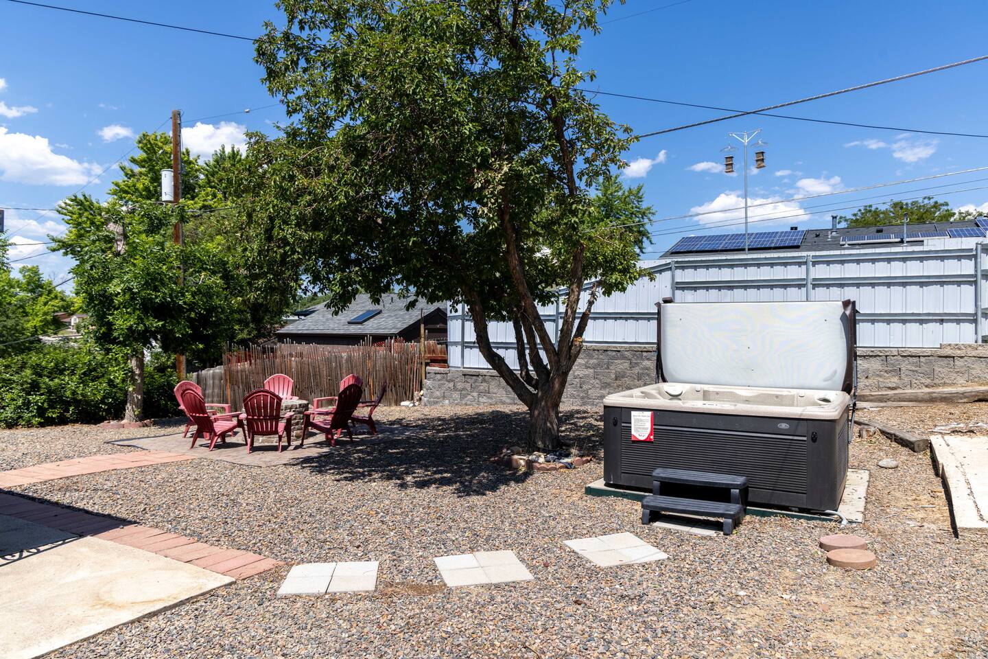Step outside to a private backyard designed for relaxation and gatherings. In the cool Colorado air, enjoy the warmth of the fire pit or soak in the hot tub under the night sky. A BBQ grill, patio seating, and outdoor games offer options for fresh-air fun year-round. The hammock is available in warmer months, creating the perfect summer lounge spot.