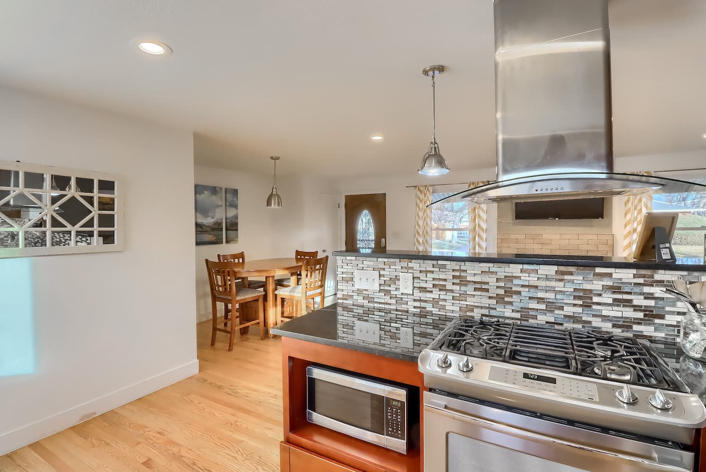 If you enjoy entertaining, you'll love the kitchen, complete with upgraded appliances, cooking essentials, necessary utensils and bakeware to create delicious meals at home. The kitchen seamlessly flows into the welcoming dining space and connects to the expansive fenced backyard, perfect for outdoor entertaining. Additionally, there is a high-top table downstairs that can seat 2 guests.