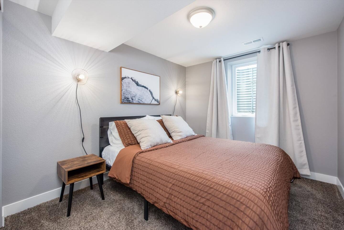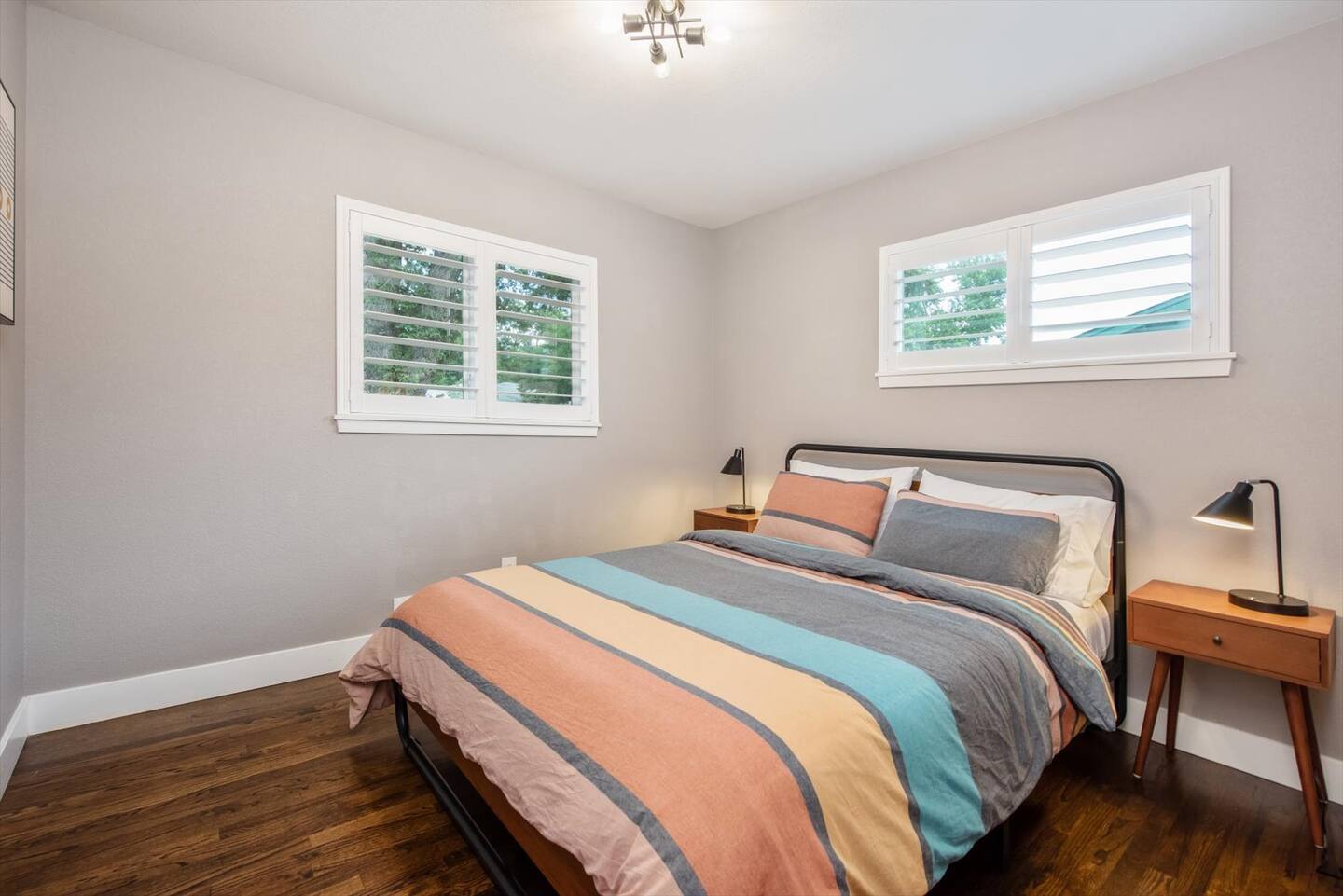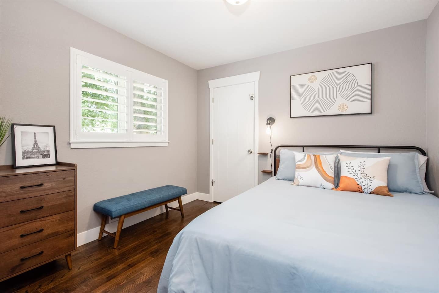 This home has 5 mod-designed bedrooms and 3 bathrooms that can host up to 12 guests. The master bedroom is fitted with a king bed and a private ensuite bathroom with a stand-up shower. The eclectic design will leave you feeling rejuvenated. In the closet, a pack n play is available for use.