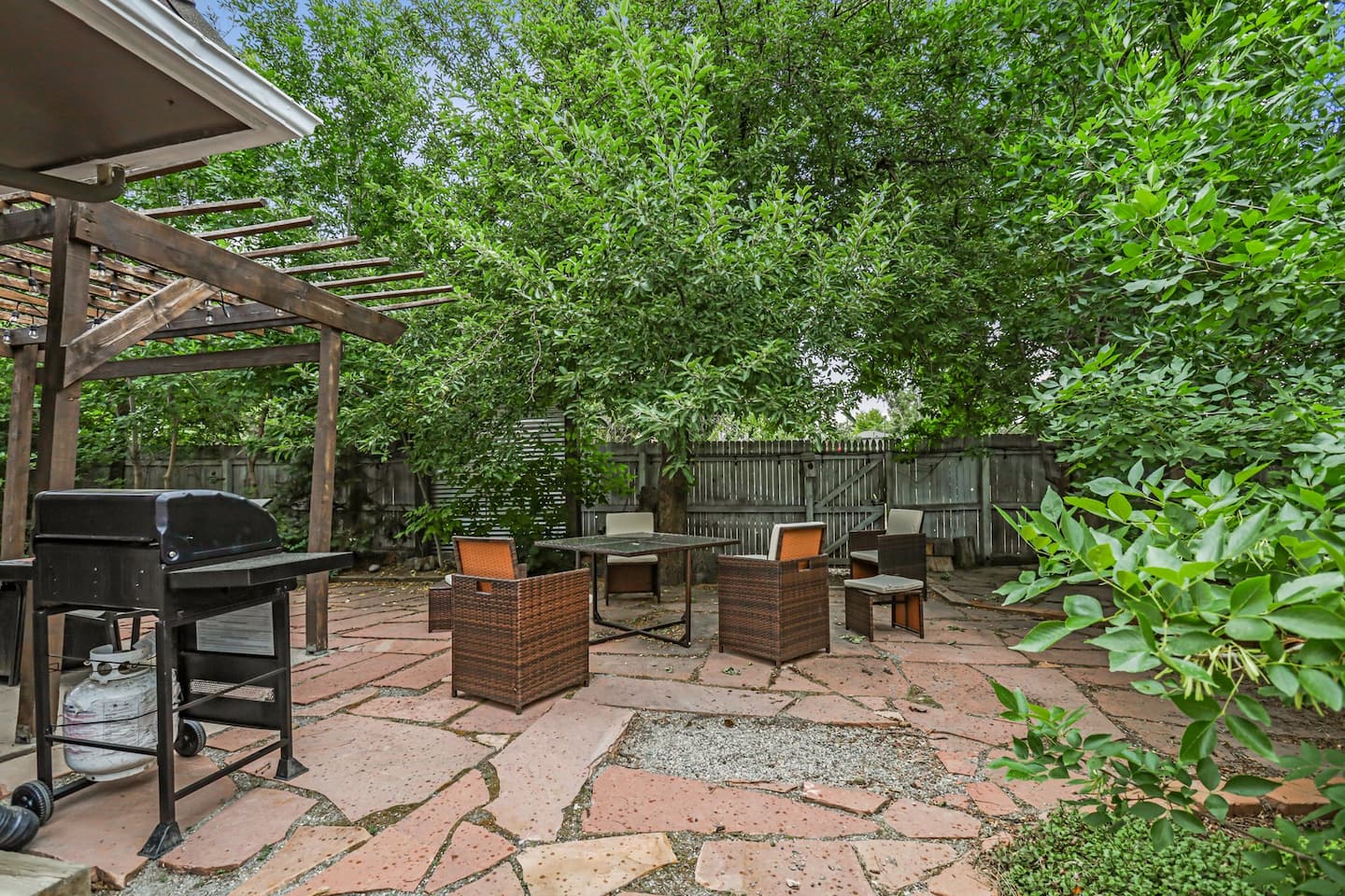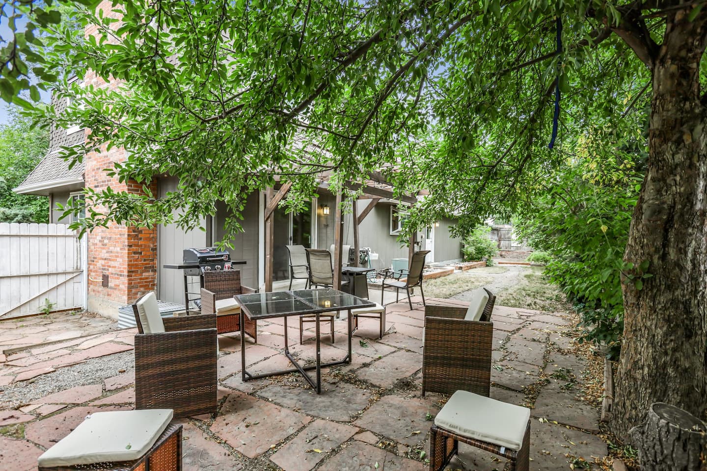 The spacious outdoor area includes a fire pit for making s'mores and a grill for cooking up delicious meals. Please note the patio furniture will be put into storage for the snowy winter months.