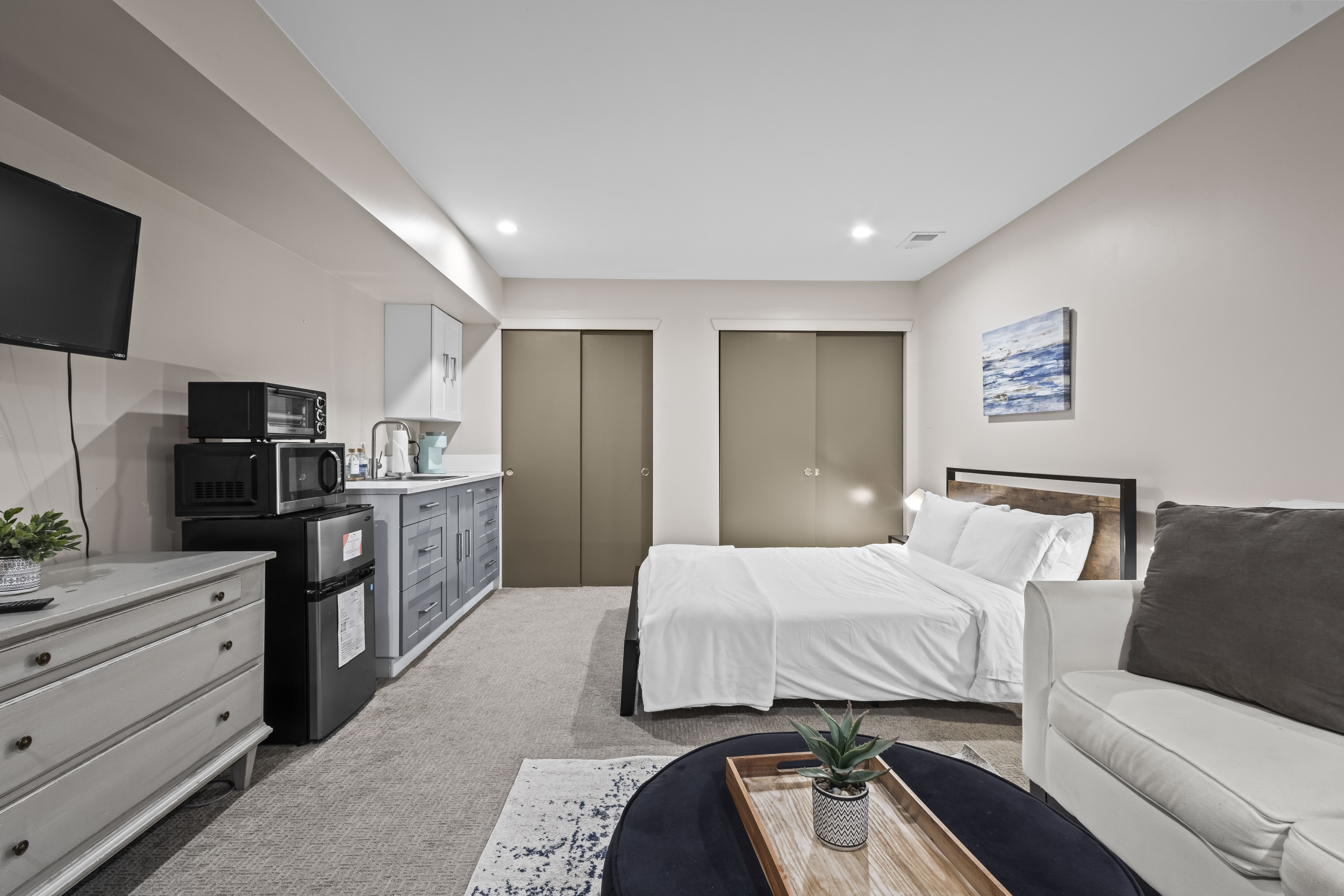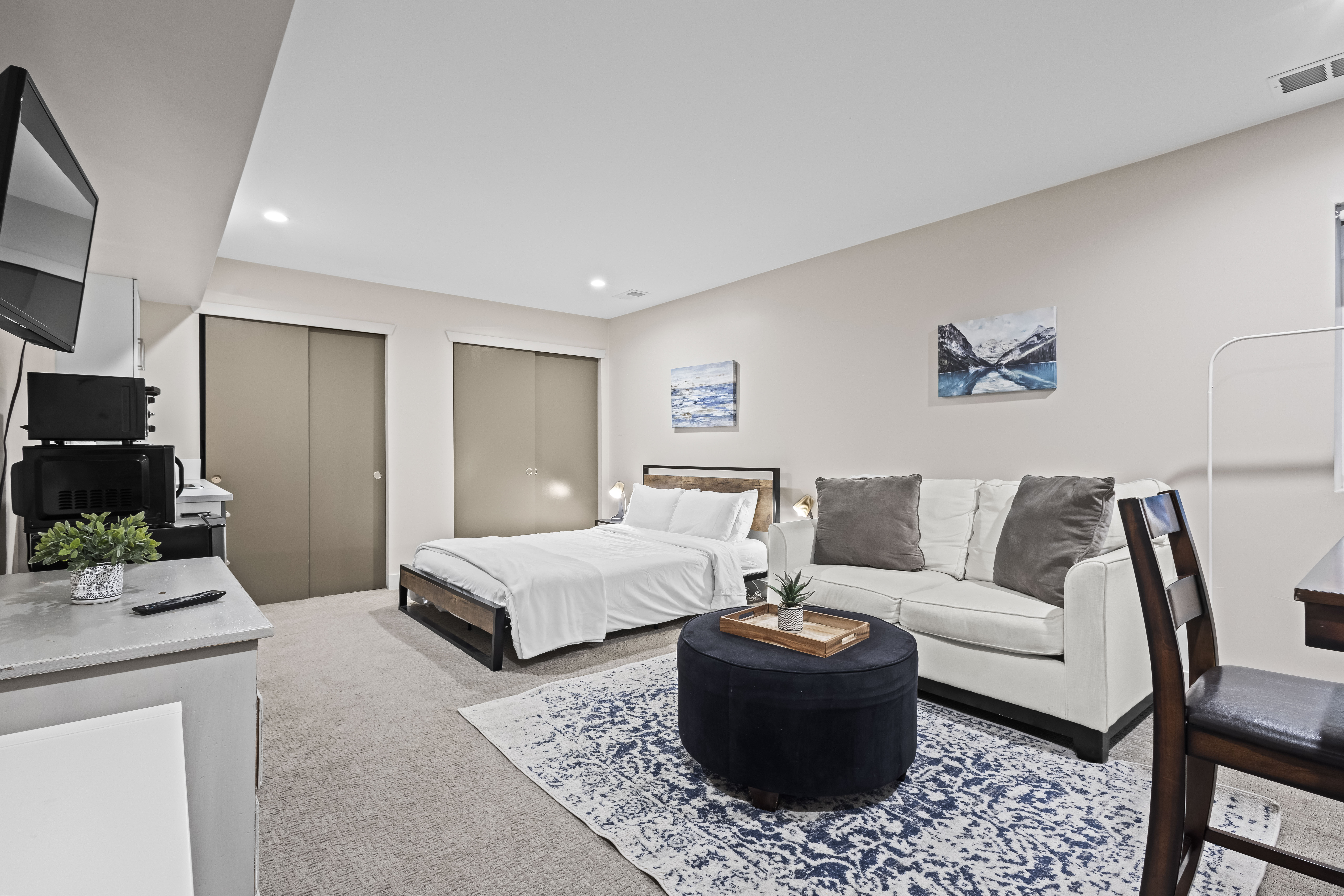 Our cozy basement studio is the perfect retreat for solo travelers working away from home. Conveniently located just a few blocks from Sloan’s Lake and the light rail station, you're within easy reach of downtown Denver, Mile High Stadium, Coors Field, LoHi, and the vibrant RiNo art district. The studio is below an apartment in our modern townhome. You'll have your own private access and a kitchenette equipped w/ a hot plate and a microwave!