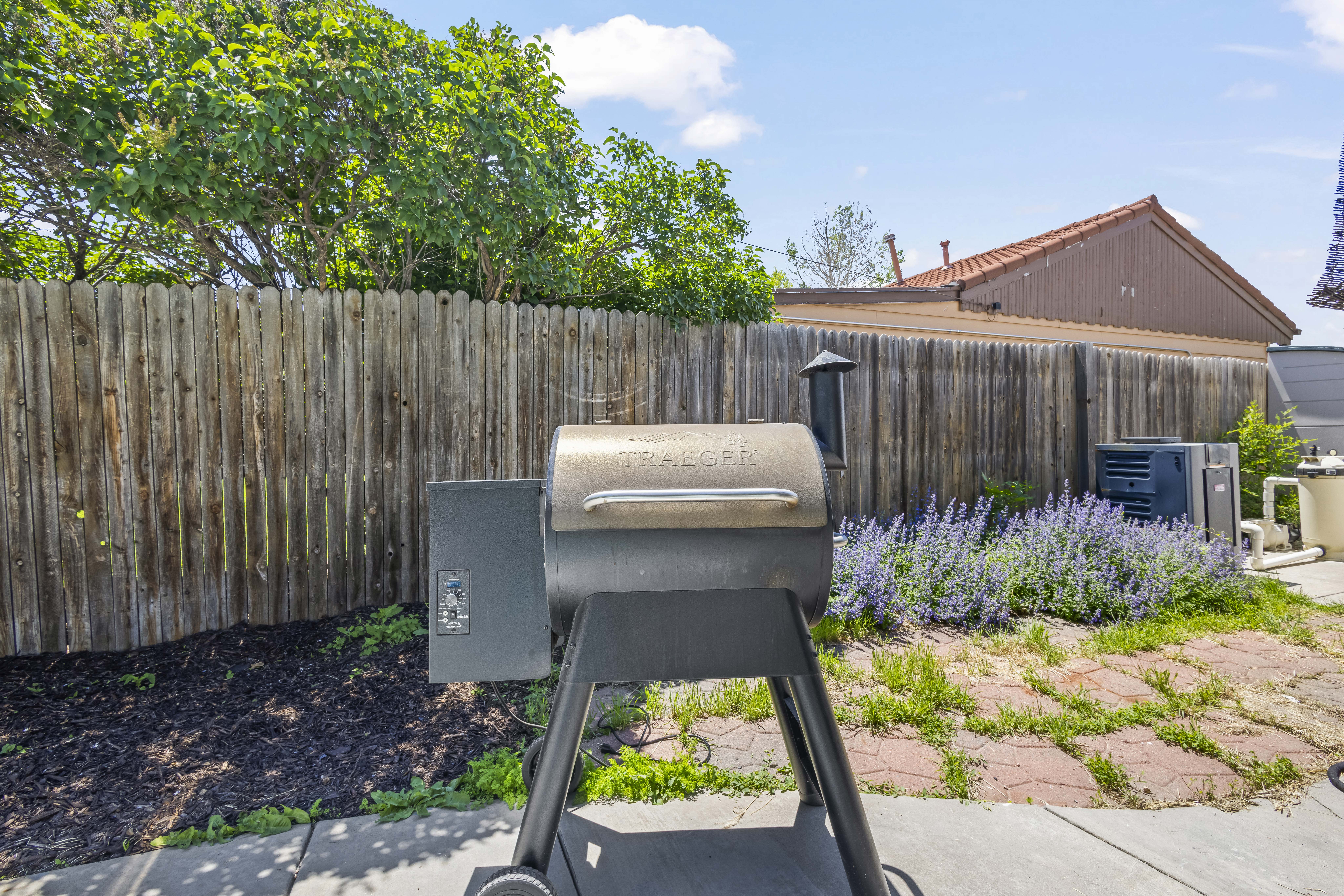 While the private pool rests for the winter season, the backyard remains a tranquil hideaway. The gazebo cabana’s soft lighting makes a perfect nook for morning coffee or an evening glass of wine under the crisp Colorado sky. The Traeger grill is available year-round—please bring your own pellets. French doors from the primary suite and living room open to the garden for peaceful views. Driveway + easy street parking; light rail within walking distance. 110 & 220 power/RV hookups at the front.