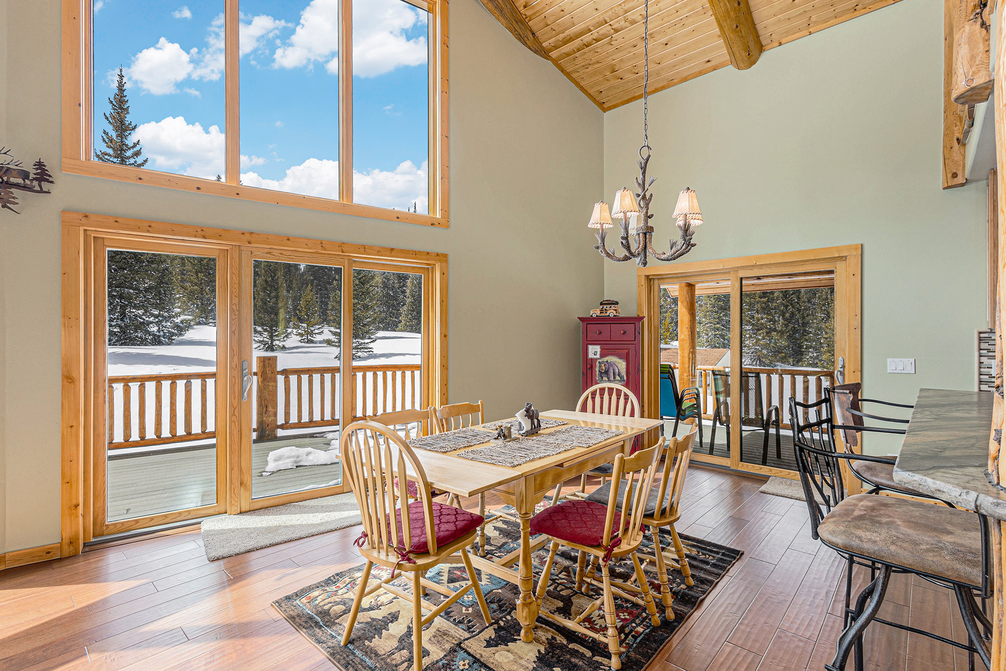 Nestled on 10 serene acres just 14 minutes from Fairplay, our mountain retreat combines remote charm with modern comfort. Enjoy breathtaking views from the wrap-around deck or relax in the luxurious master suite featuring a king size bed. The chef's kitchen boasts inspiring vistas. Boot warmers, ski storage, and snowshoes prepare you for adventure. Kids and adults alike will love the game loft, and pets are pampered too. Only 42 minutes to Breckenridge, nature and luxury await!
