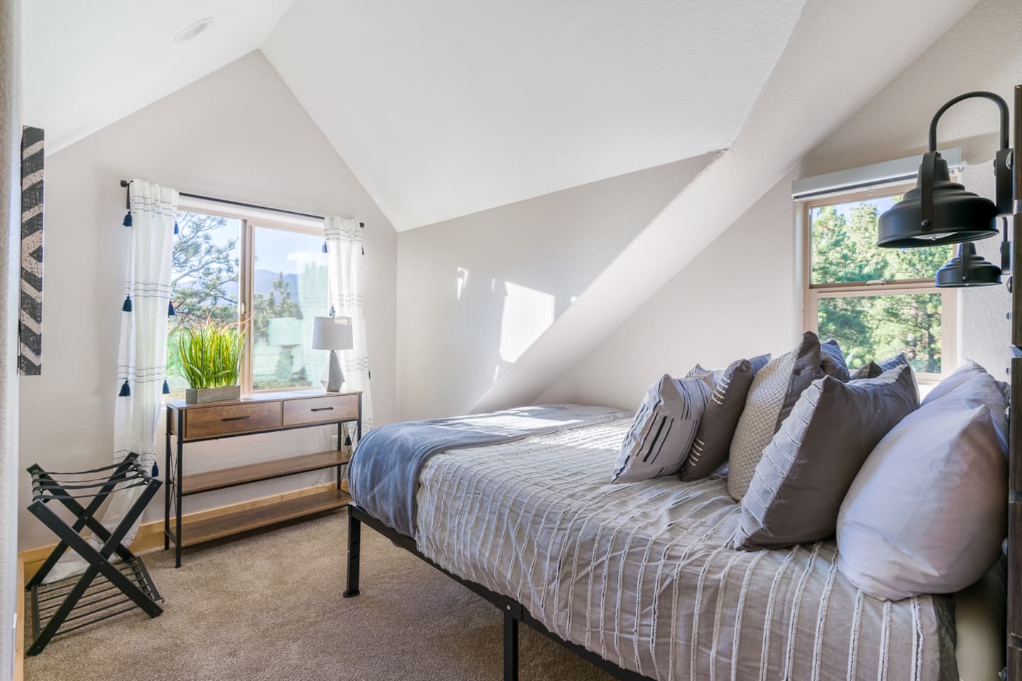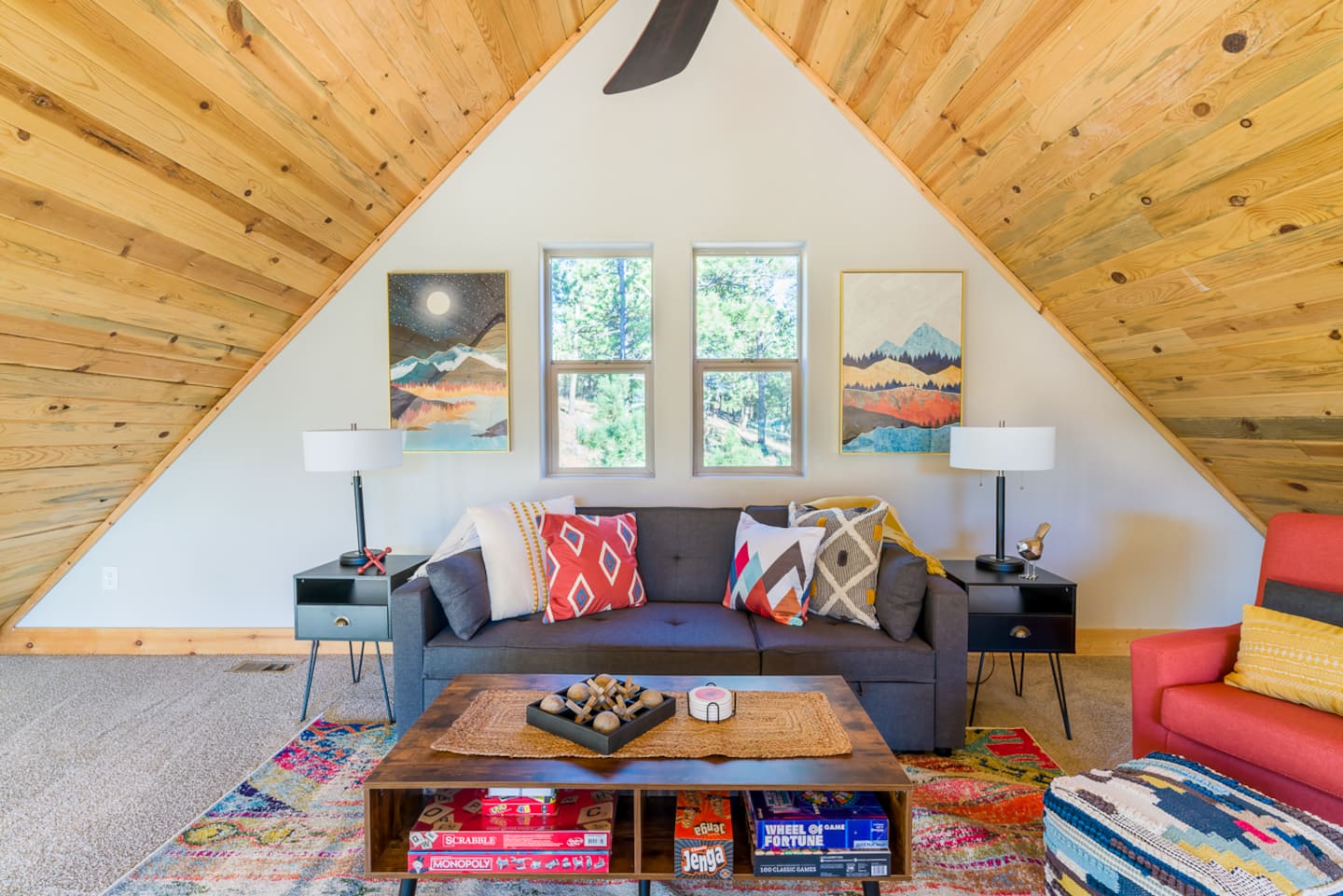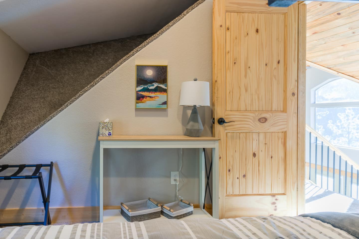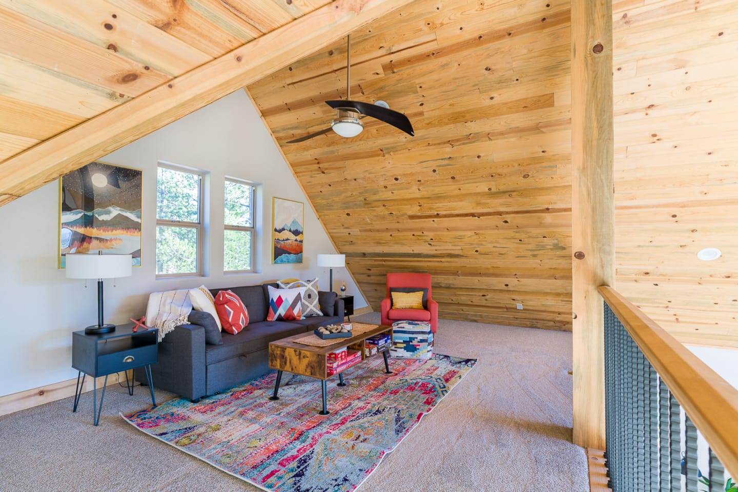 The cabin sits in a quiet mountain community just 15 minutes from downtown Bailey, where you’ll find local dining, cafés, and breweries. Hiking, fishing, biking, and ATV trails are close by, with Staunton State Park, Red Rocks Amphitheatre, and Breckenridge all within a drive.
