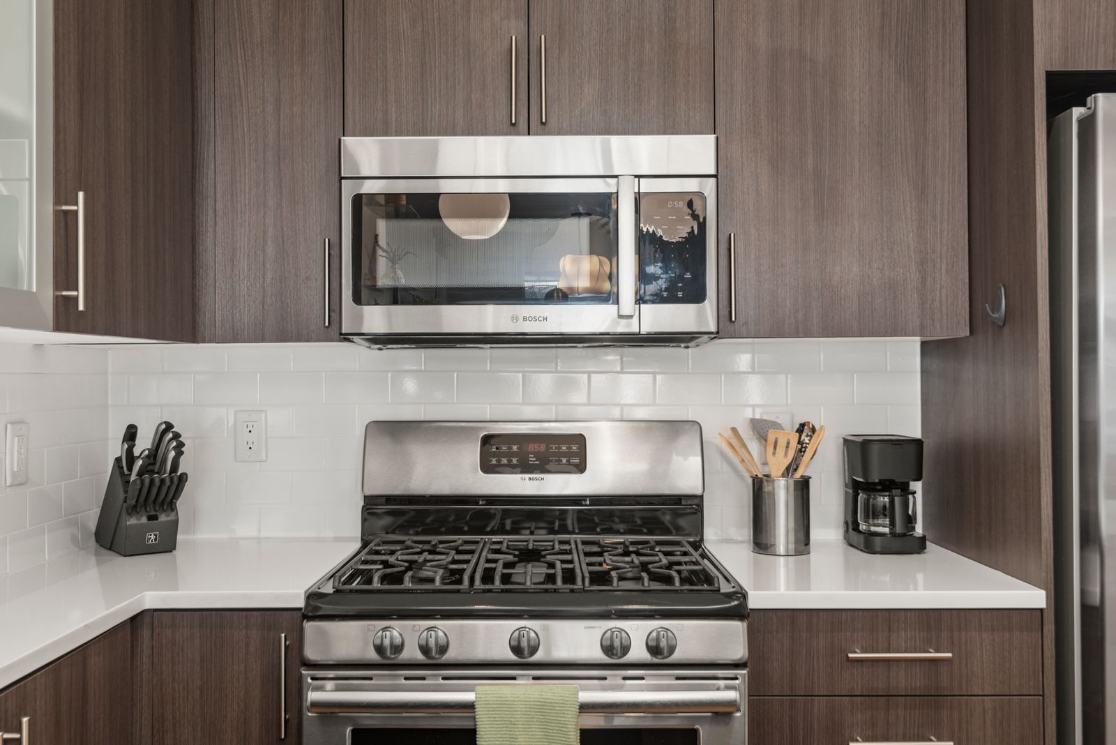 The kitchen is stocked with everything you need to cook like a pro, from cookware and bakeware to stylish dishware. Start your mornings at the convenient coffee station, featuring a drip coffee maker and a generous supply of complimentary coffee.