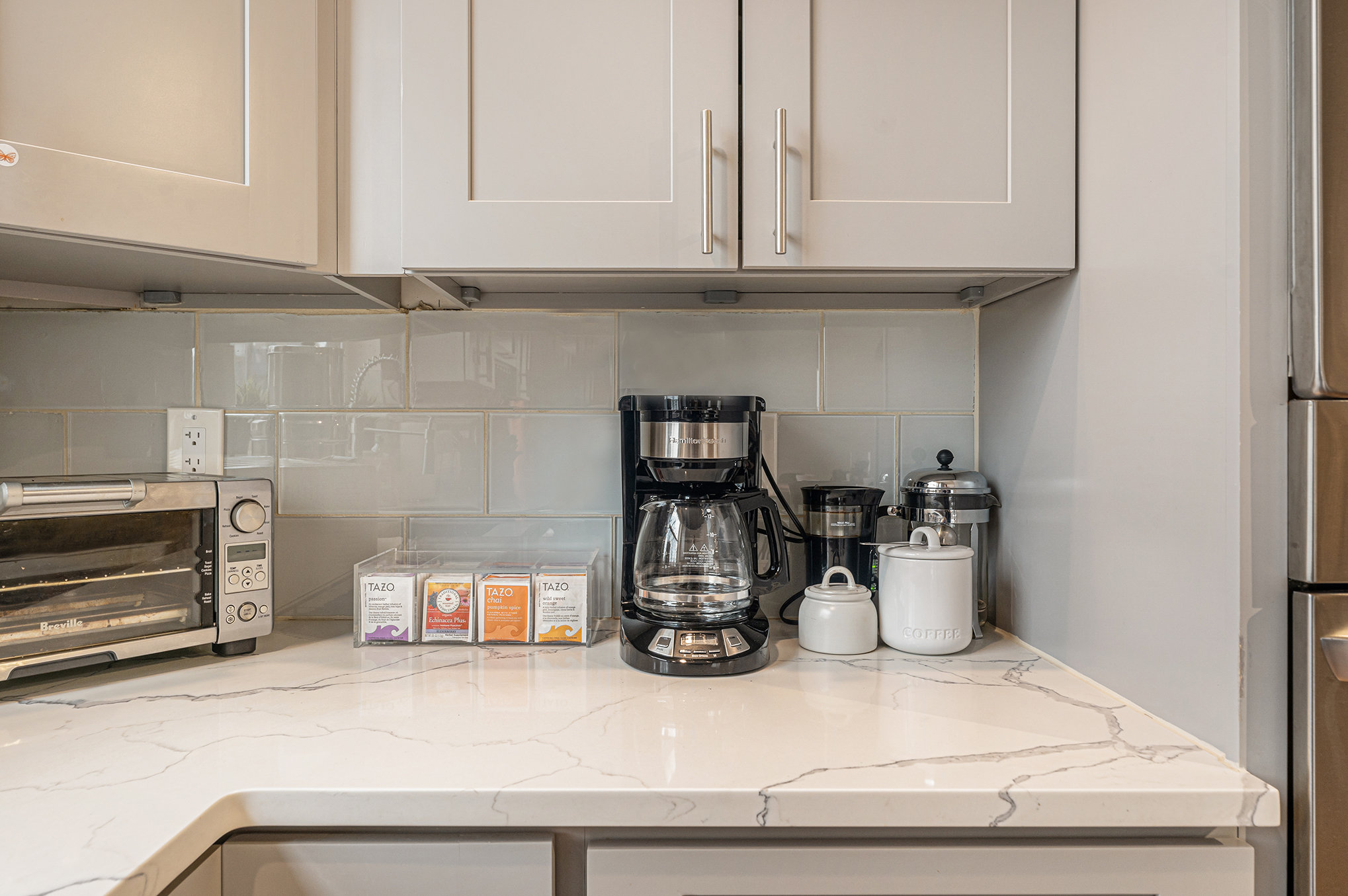 This spacious kitchen has plenty of room to prep those big group meals. You’ll find cooking essentials from premium non-stick pans and bakeware to sets of plates, bowls and drink-ware. Enjoy the coffee maker, toaster oven, water filter, seasonings, cooking oil, plus plenty of coffee on the house!