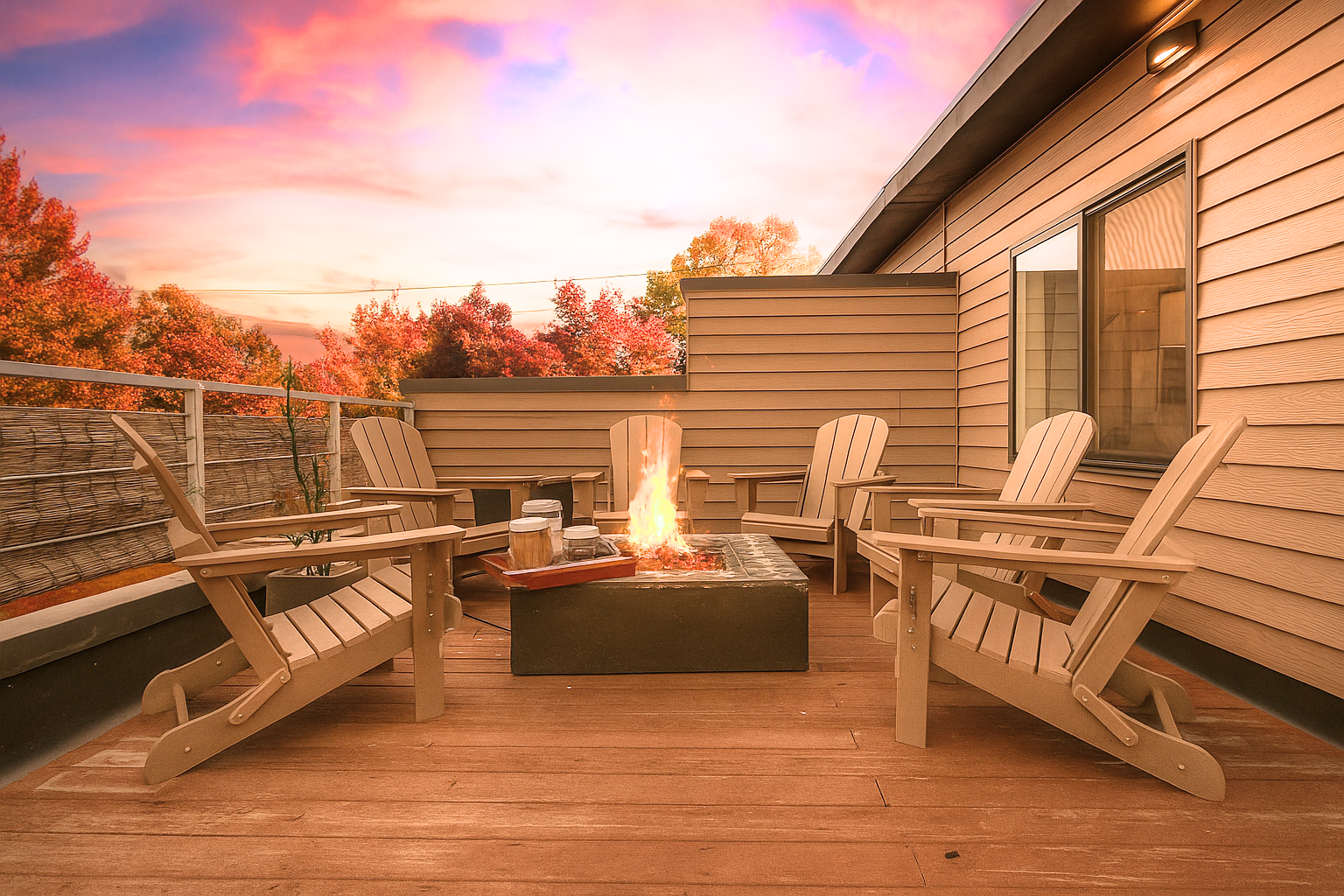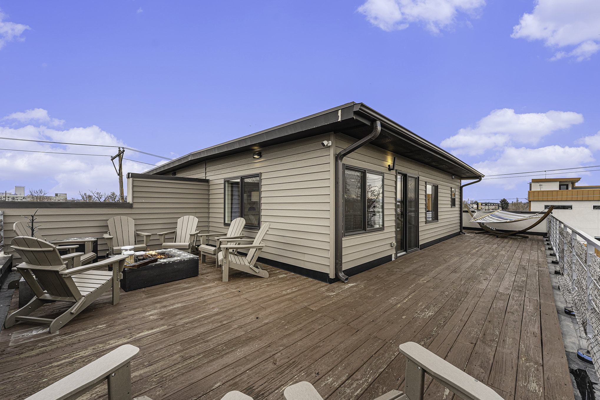 Gather your group to watch the sunset over the Rockies while roasting smores around the firepit in comfy Adirondack chairs. Relax in the hammock and enjoy views of Downtown Denver. Mountain and City Views, pictures just don't it justice 😉