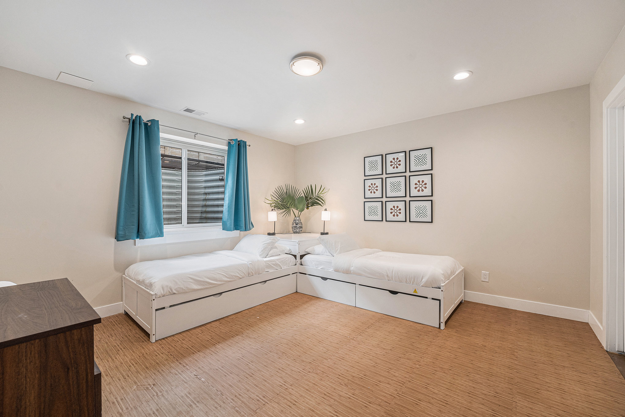 ✔ Bedroom 4: THREE SINGLE BEDS (Trundle bed) + foldout twin mattress. Great kid’s room