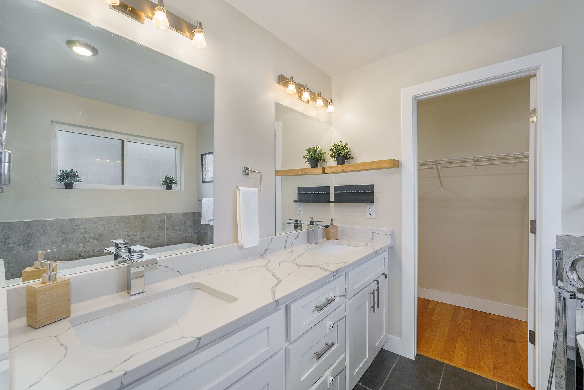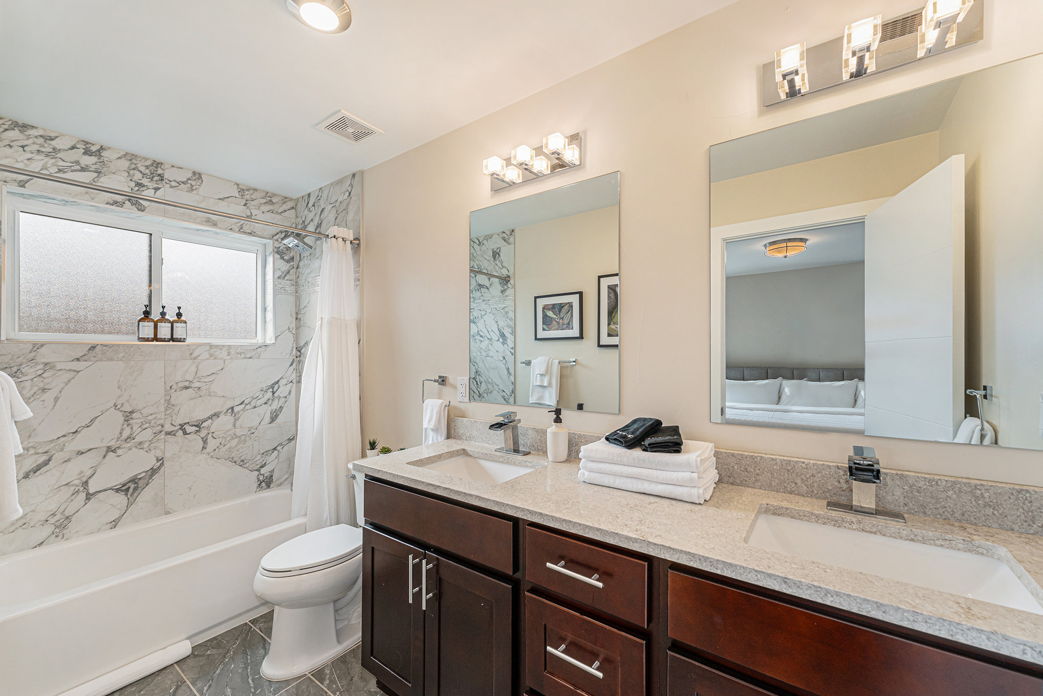✔ PRIMARY SUITE 2: KING BED + office desk with monitor and printer + large en-suite bathroom w/ dual vanity, spacious closet.