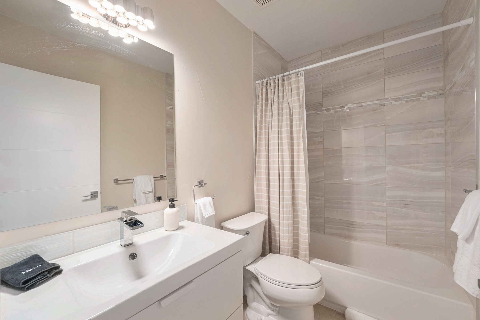 All bathrooms feature premium shampoo, conditioner, body wash, makeup towels + plenty of plush bath towels.