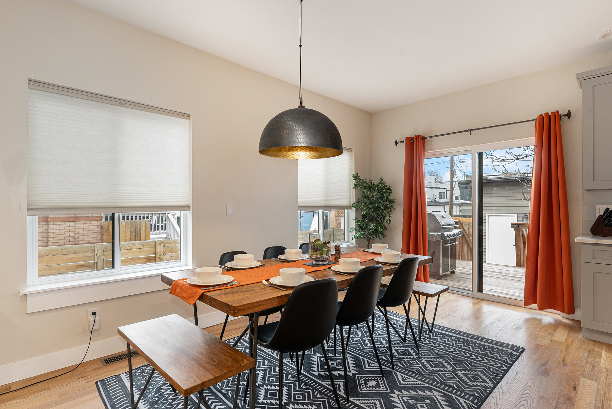 Gather friends & family around an oversized dining table with formal seating for 8 +.