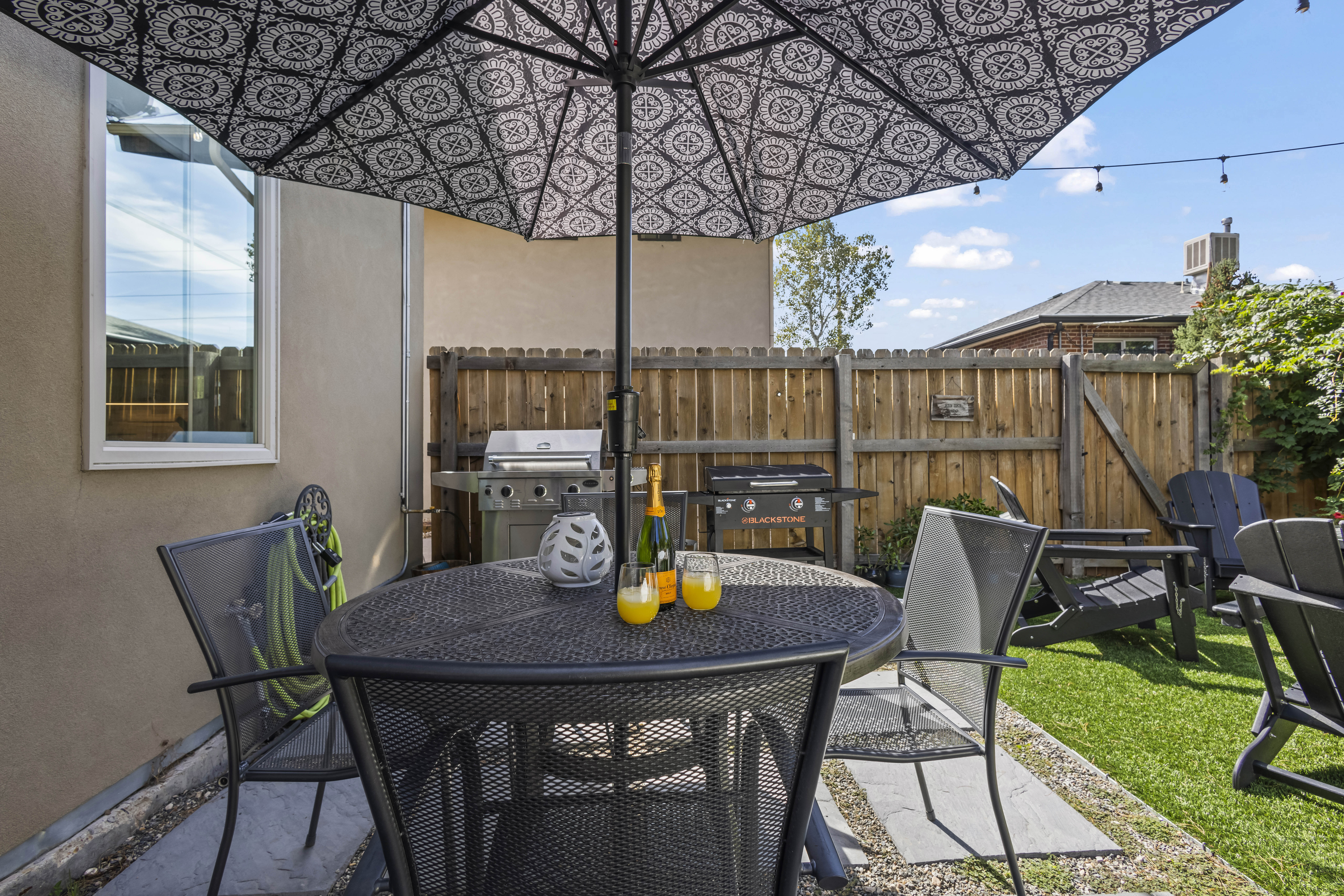 Relax under the Denver night sky with cozy outdoor lounge seating and a BBQ grill, perfect for cooking and dining al fresco. Gather around the firepit to share stories or roast s’mores. The fully fenced yard offers privacy and peace of mind. Enjoy the convenience of one driveway parking spot, plus plenty of street parking.