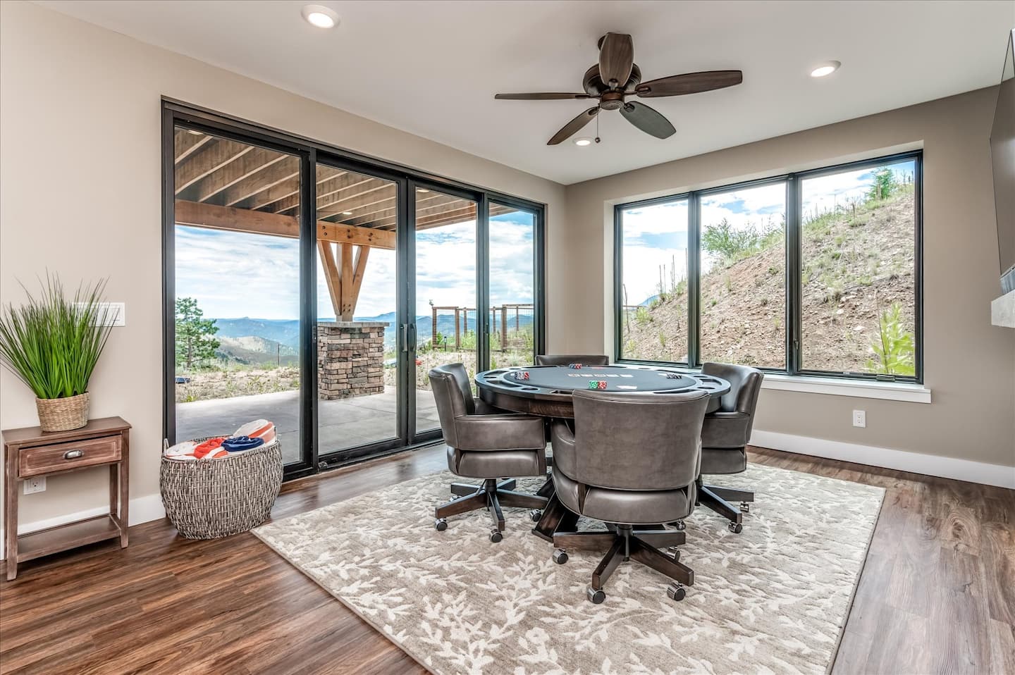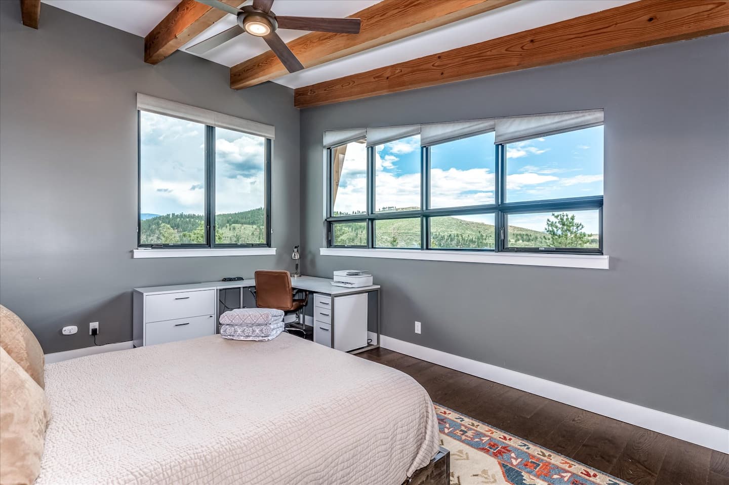 Summer: Our mountain home DOES NOT have air conditioning during the summer months. However, the cooler temperatures and low humidity in Colorado make A/C less necessary in this area. Instead, the home has various windows that can be opened and ceiling fans in the bedrooms and living areas to provide ventilation and air circulation.