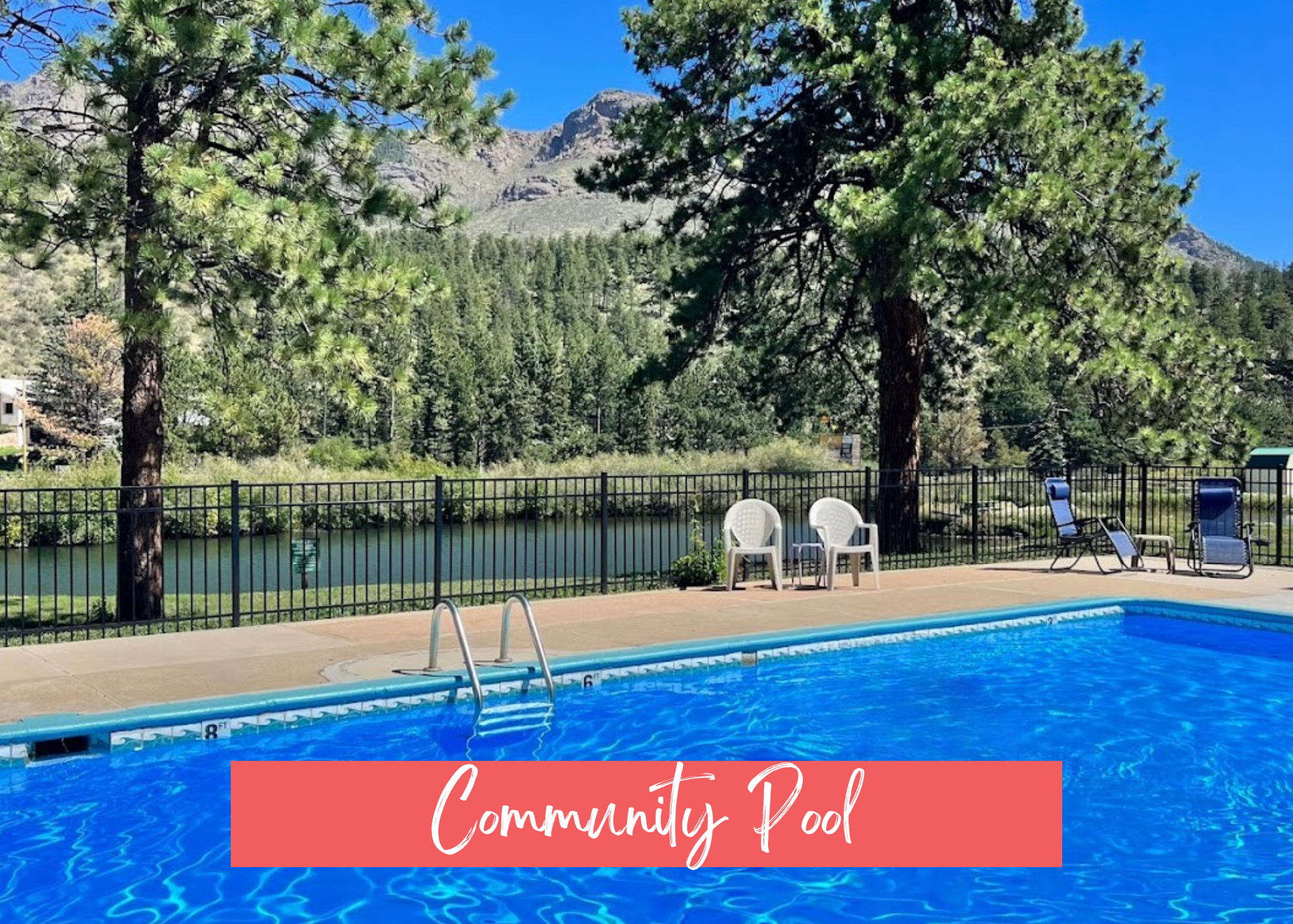 Step onto the spacious deck overlooking the river, where outdoor furniture invites quiet mornings and evenings under the trees. Cast a line into the water, grill on the BBQ, or simply take in the mountain air. The community pool, open seasonally, offers another way to unwind on warm summer days.