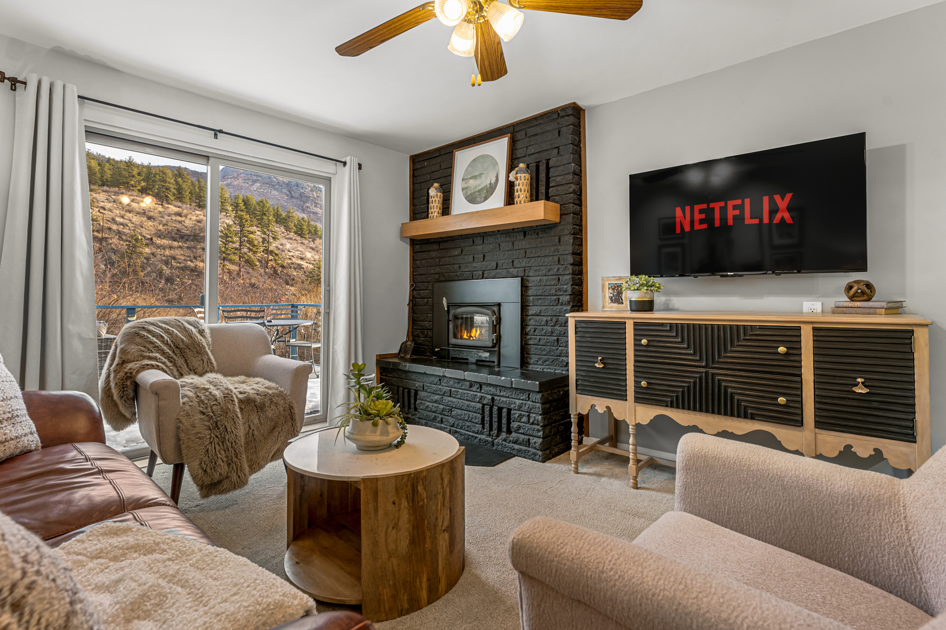 - Indoor fireplace & Smart TV