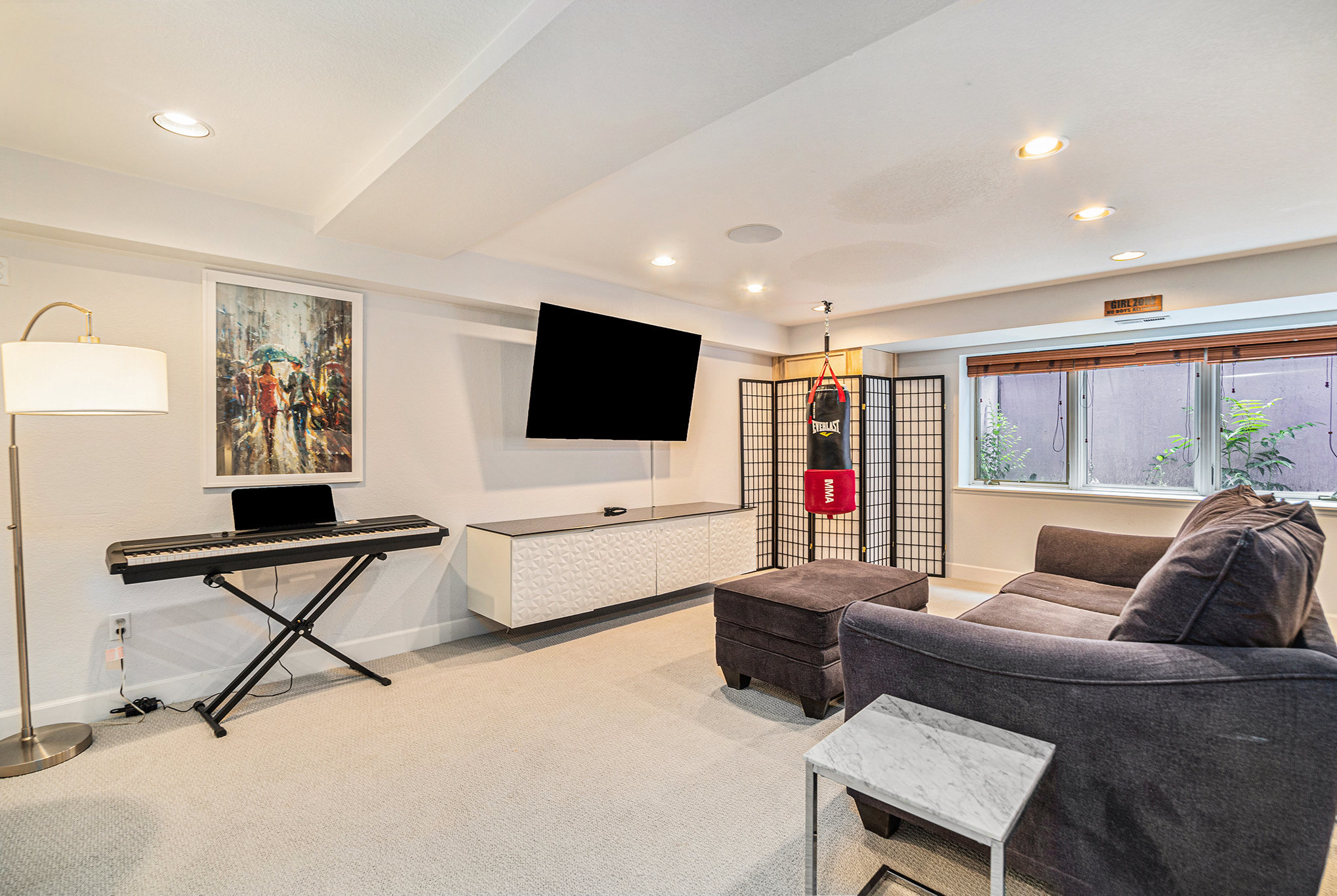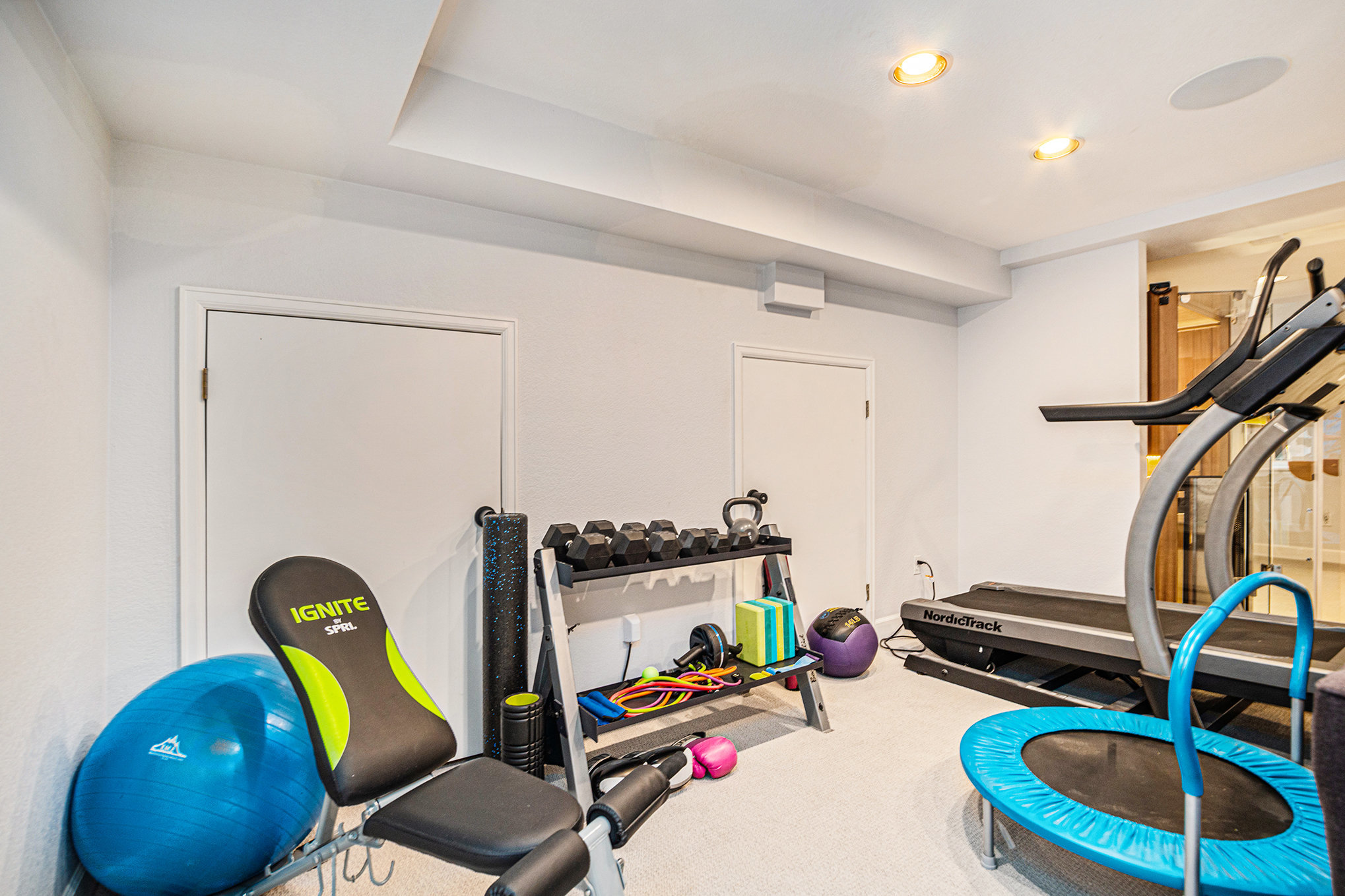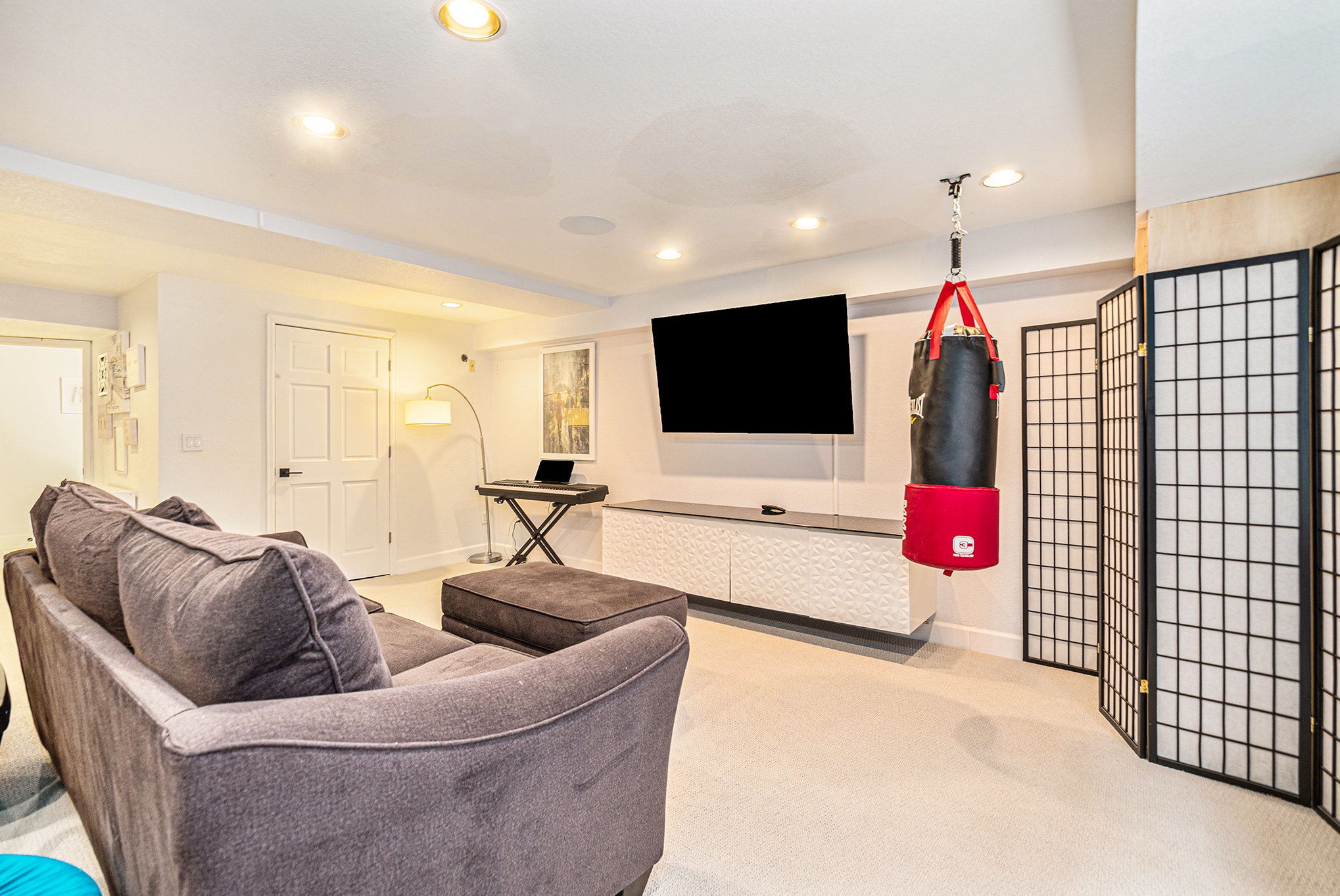 – Private sauna, gym & cozy movie room