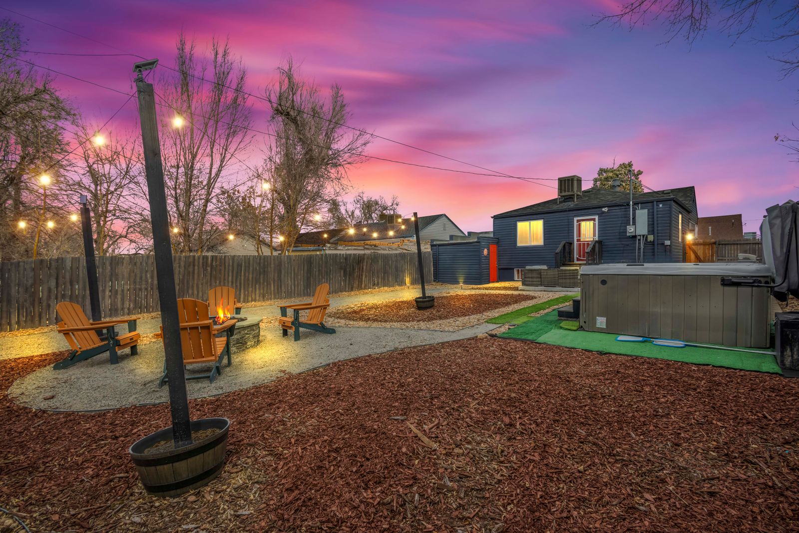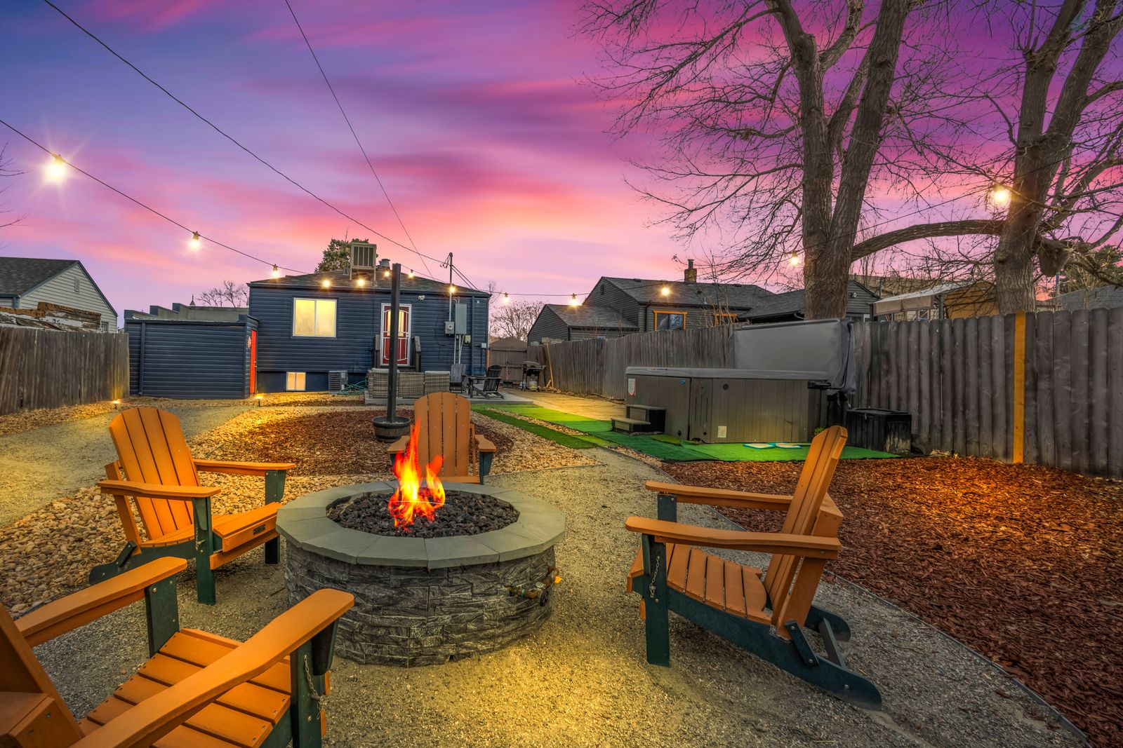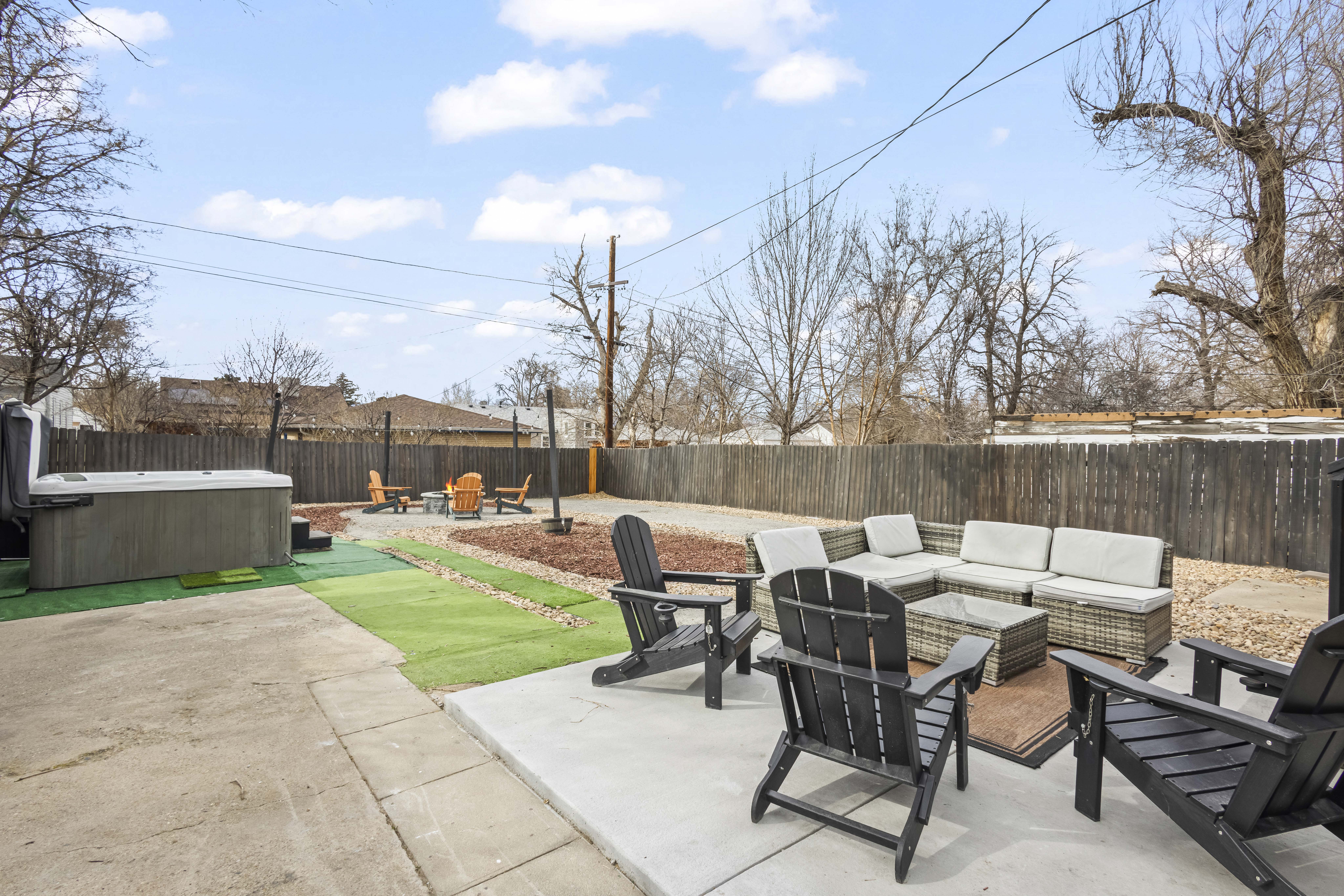 Escape to this spacious 5-bed, 2-bath Denver home, perfect for groups! Enjoy 1,800 sq ft with 2 living rooms, 2 kitchens, a hot tub, a fire pit, and a huge fenced yard. Renovated for comfort, it’s your ideal base for exploring both the city and the Rocky Mountains. Conveniently located near I-70 for easy access to Red Rocks and more. Sleeps 10 comfortably.