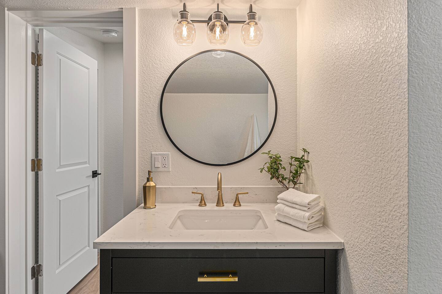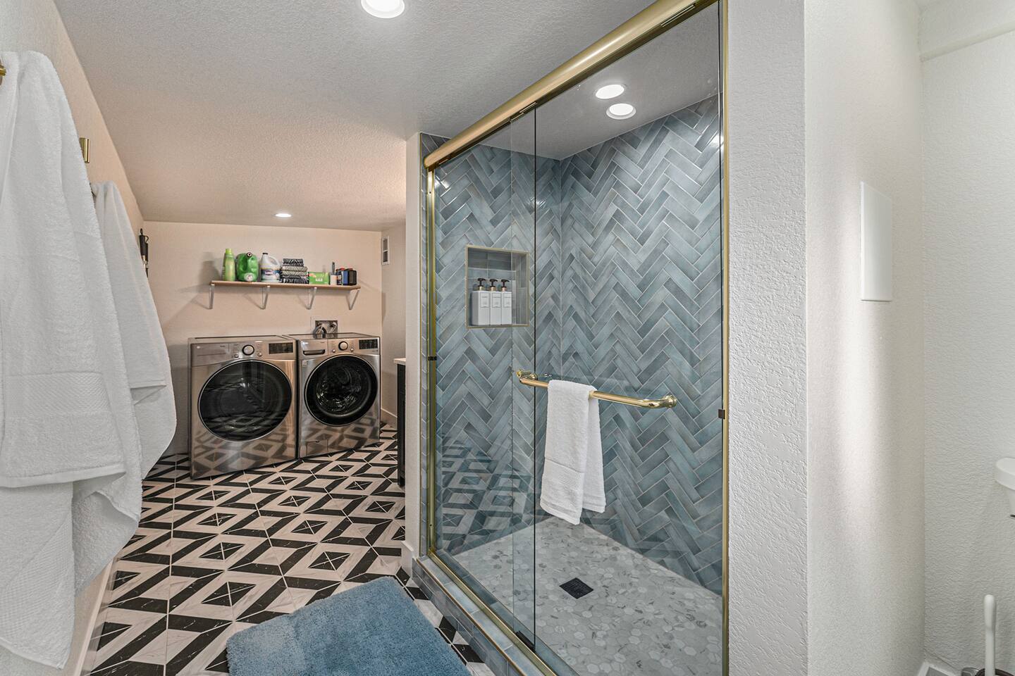 Both modern bathroom offers a shower/tub combo, stocked with bathroom essentials such as towels, shampoo, conditioner, and body soap.