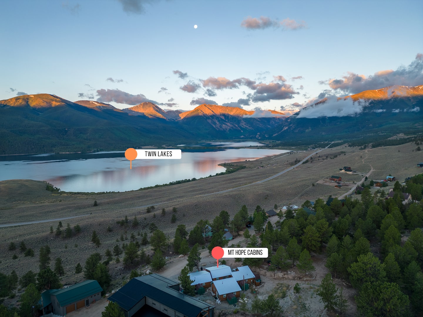A breath taking view of Twin lakes and the surrounding