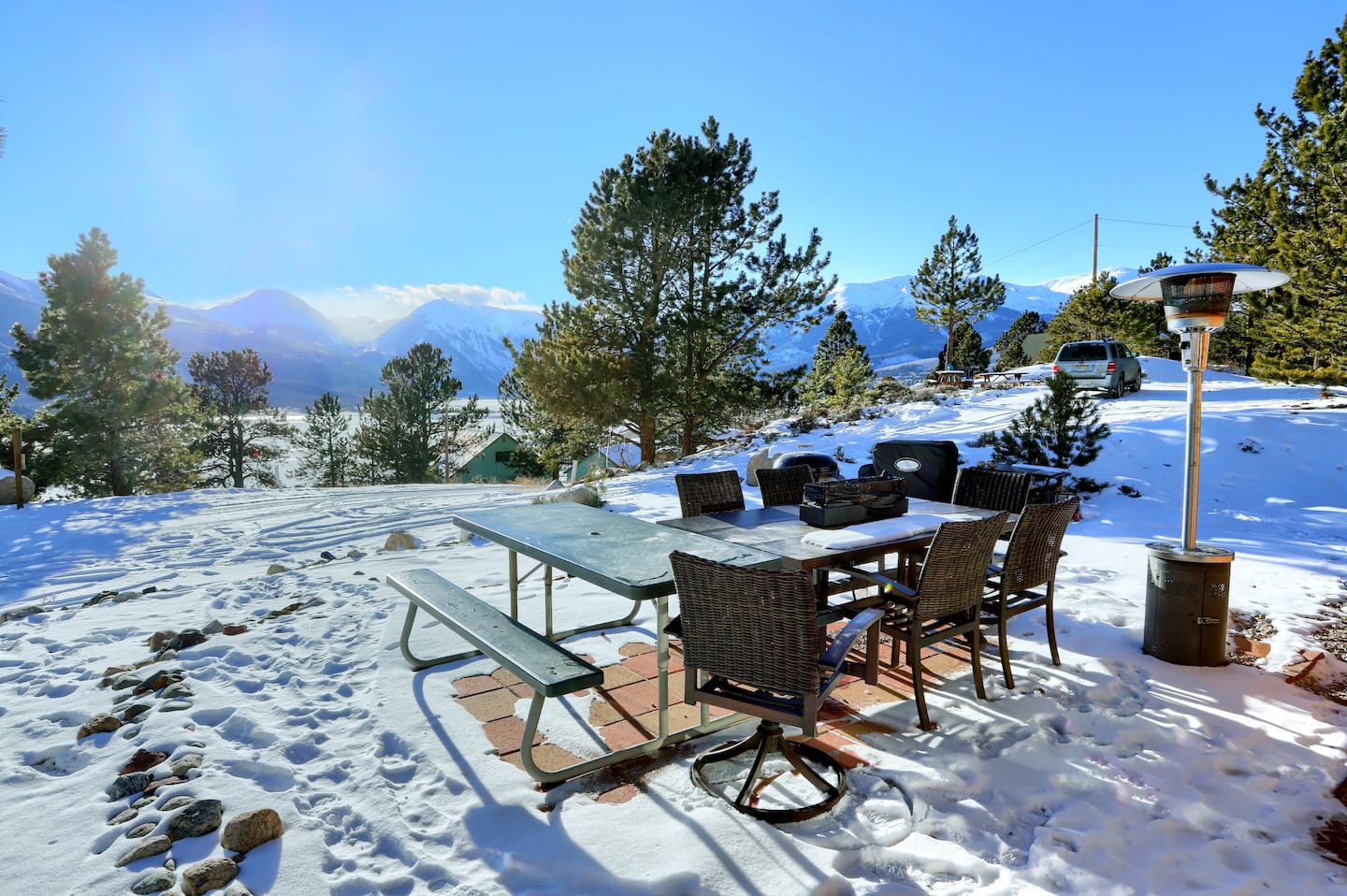 The cabin was everything we expected. The view was stunning and the accommodations very comfortable.The patio was perfect to sit and watch the sunset from and in the mornings just enjoy the view of Twin Lakes.