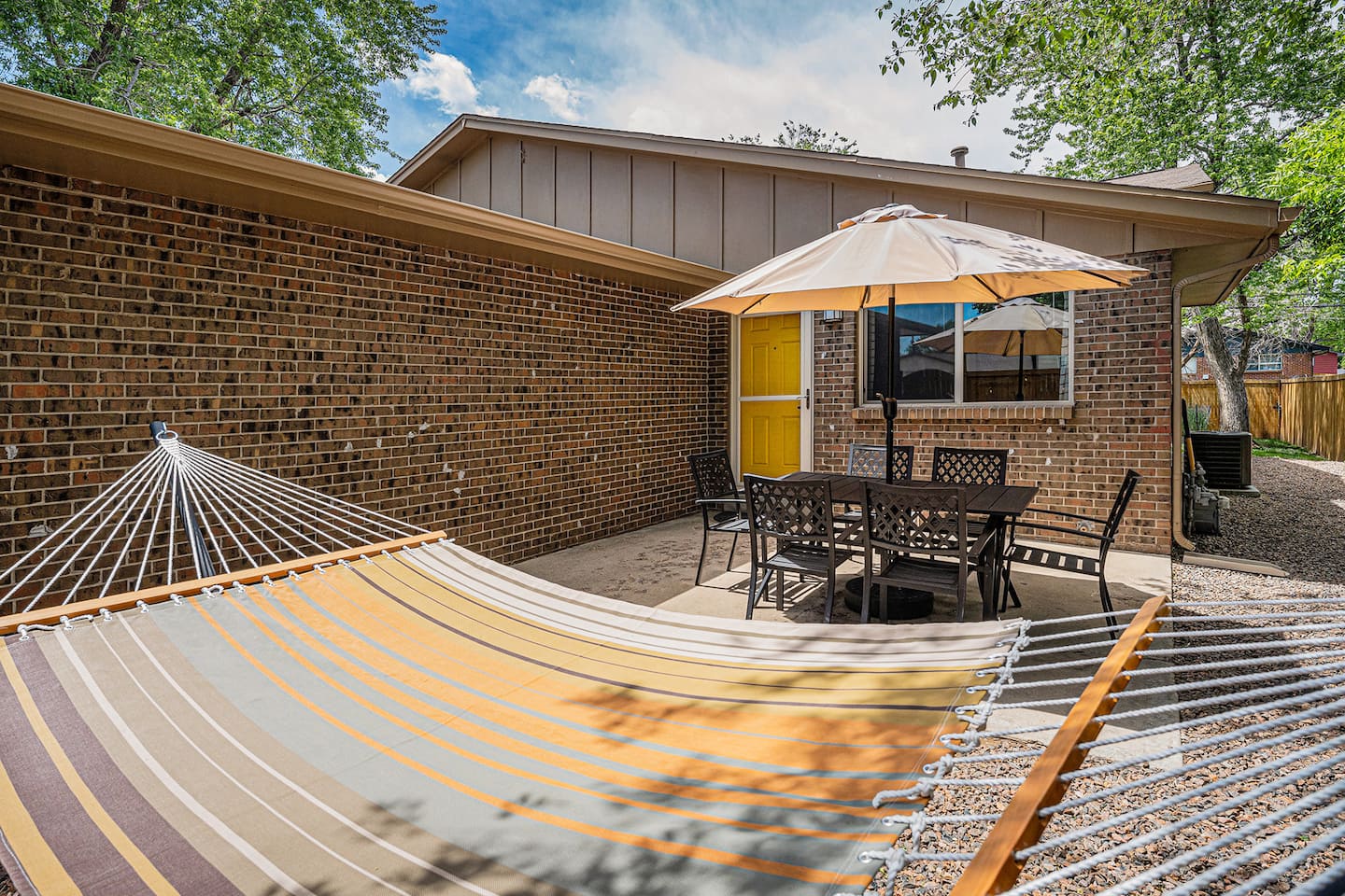 – Private fenced yard w/ hammock, BBQ & games