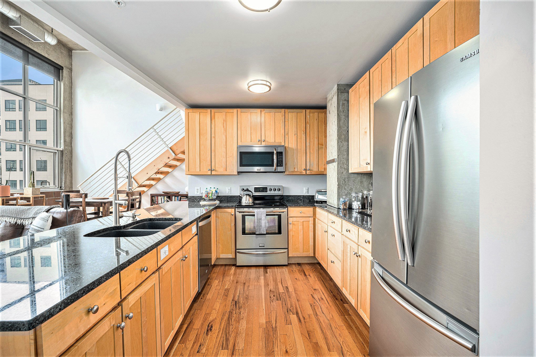 Location, location, location! Stay in the heart of Denver’s vibrant Golden Triangle, walking distance to museums, dining, and nightlife. This modern loft features a private balcony with city and mountain views, a spacious light-filled design, and a sleek workspace with lightning-fast fiber internet. Start your morning with a fresh espresso in the fully equipped kitchen. Enjoy easy access to Denver's top attractions or unwind in comfort at this centrally located loft. 1 garage parking space!