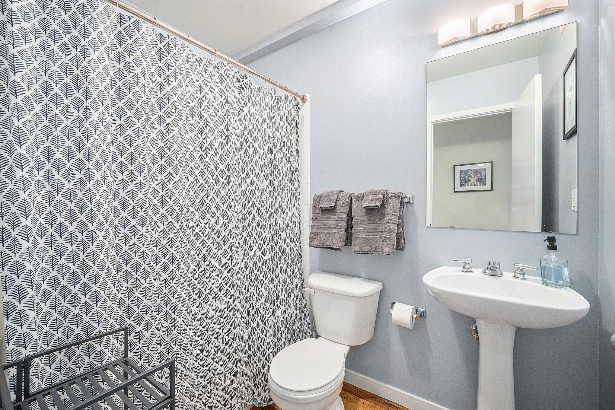 ✔ Bathroom 2: Full bathroom on main floor with shower & tub combo, located near the pullout couch.